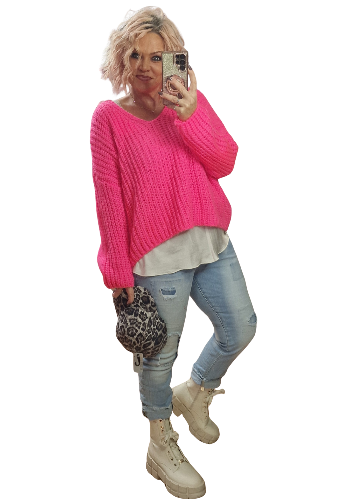 Bringe Farbe in die kalte Jahreszeit! Dieser kuschelige Pullover in strahlendem Neon-Pink ist ein absolutes Statement-Piece, das gute Laune garantiert!