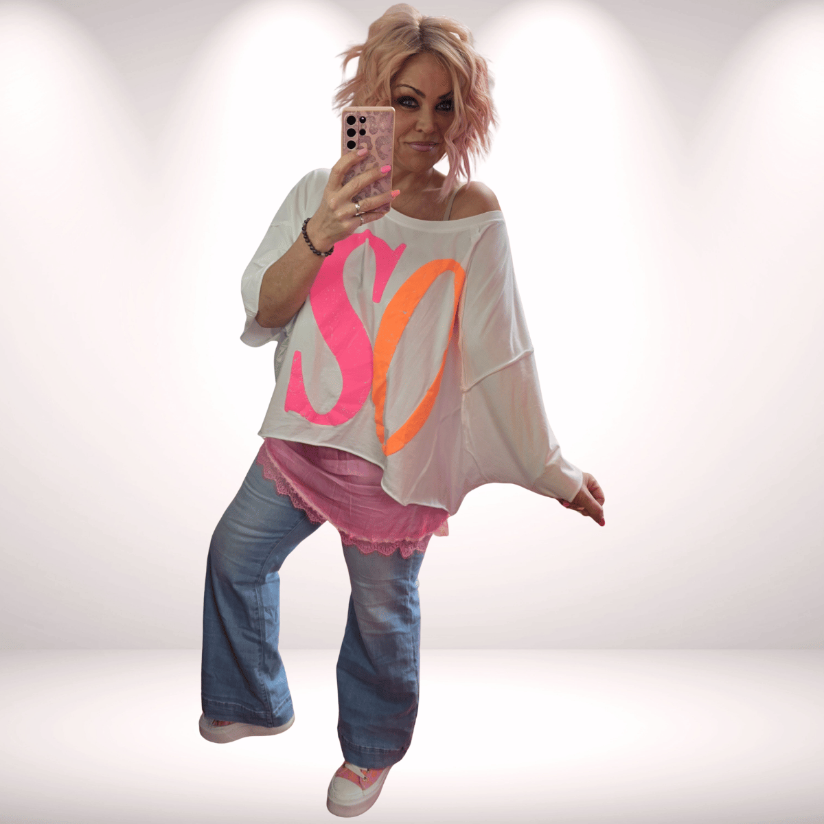 • 4 Farben offwhite - neon pink - neonorange - schwarz