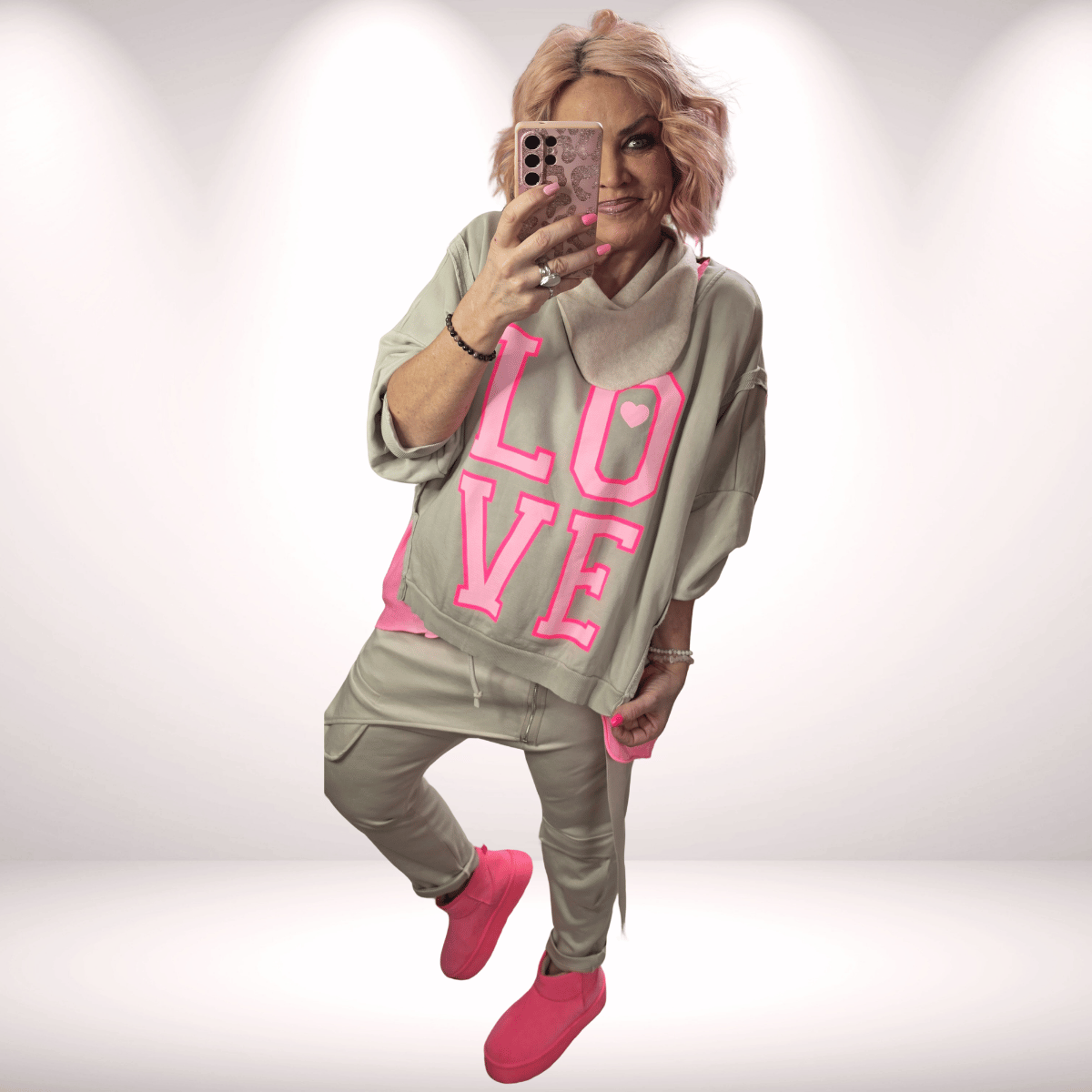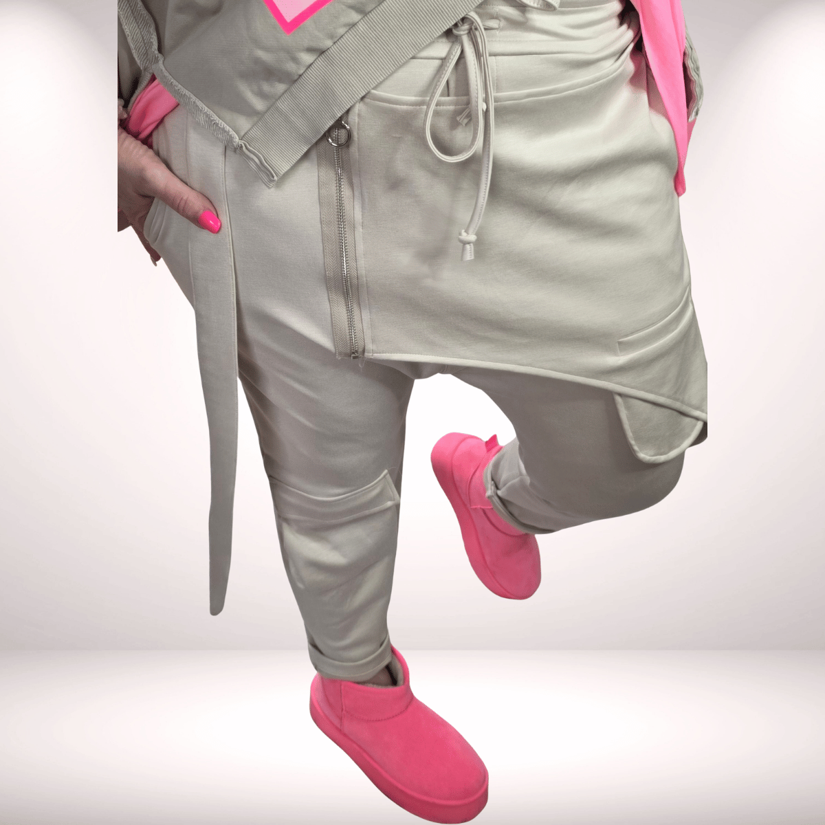Mit ihren zwei seitlichen Eingriffstaschen und dem elastischen Gummizugbündchen sitzt sie herrlich entspannt und bietet maximalen Tragekomfort – perfekt für alle, die Mode lieben, ohne auf Bequemlichkeit zu verzichten.