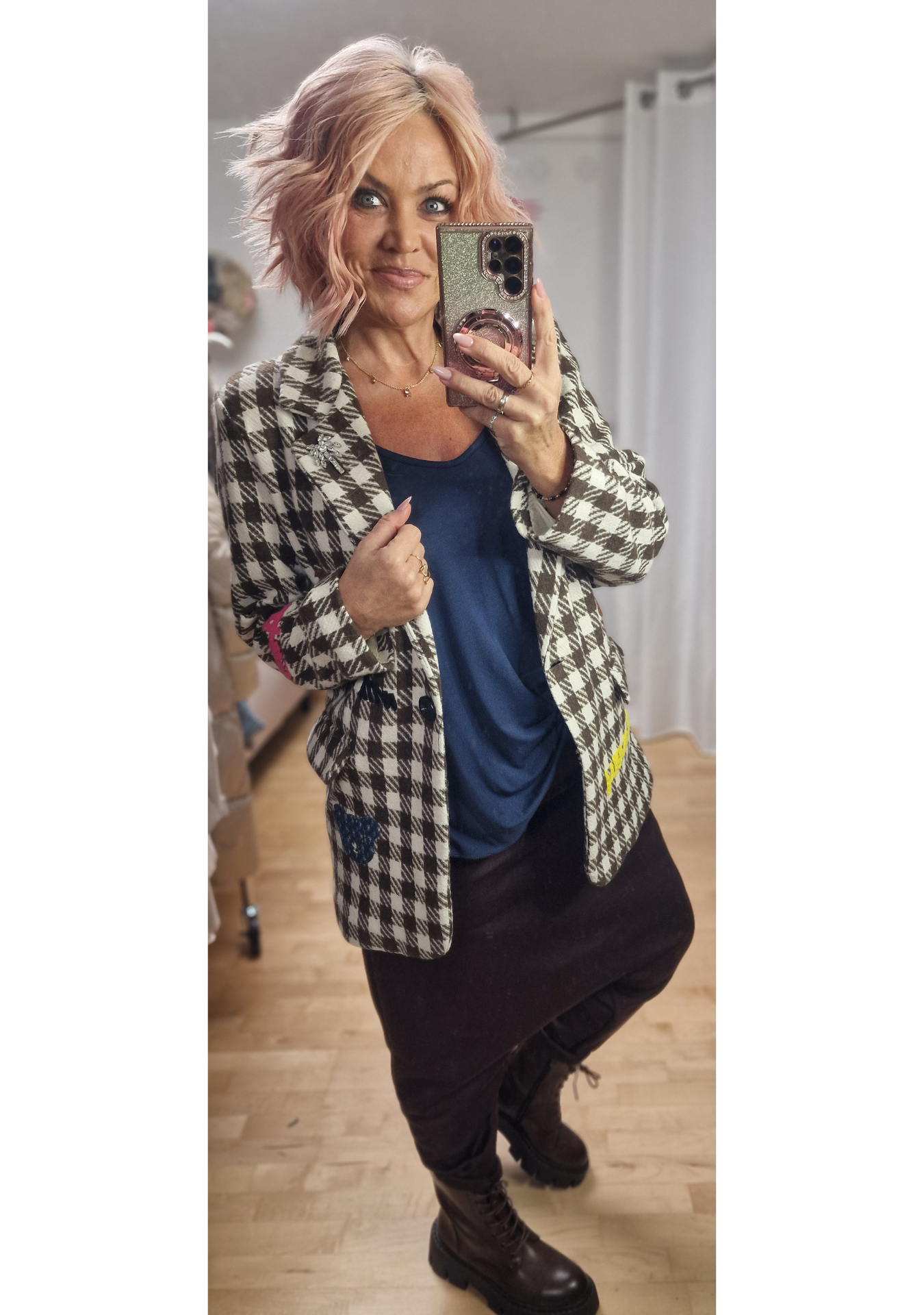 Produktinformationen "Blazer Schoko-Offwhite Kariert mit Patches"