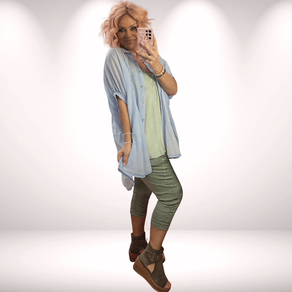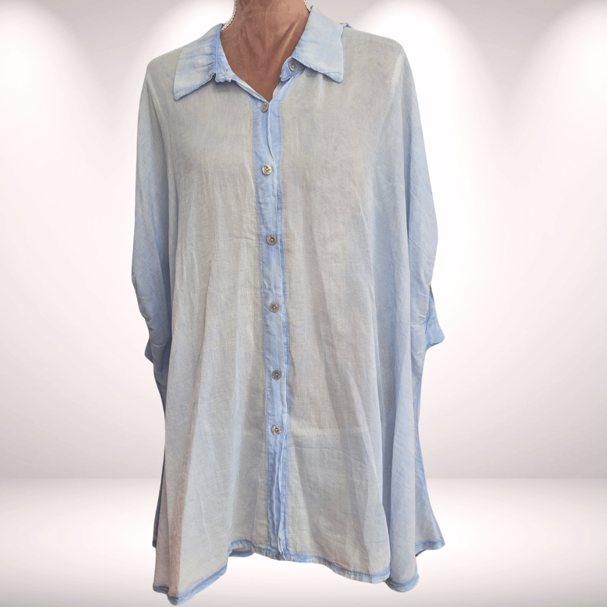Bluse Oversize – mit Perlmuttknöpfen | Vokuhila Style - Hellblau