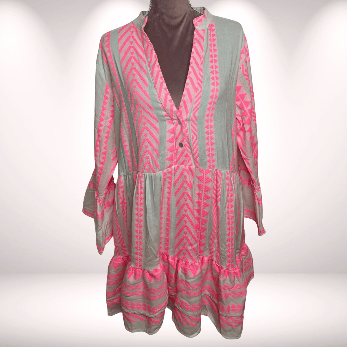 Boho Tunika – mit Neonpinkstickerei - weiß