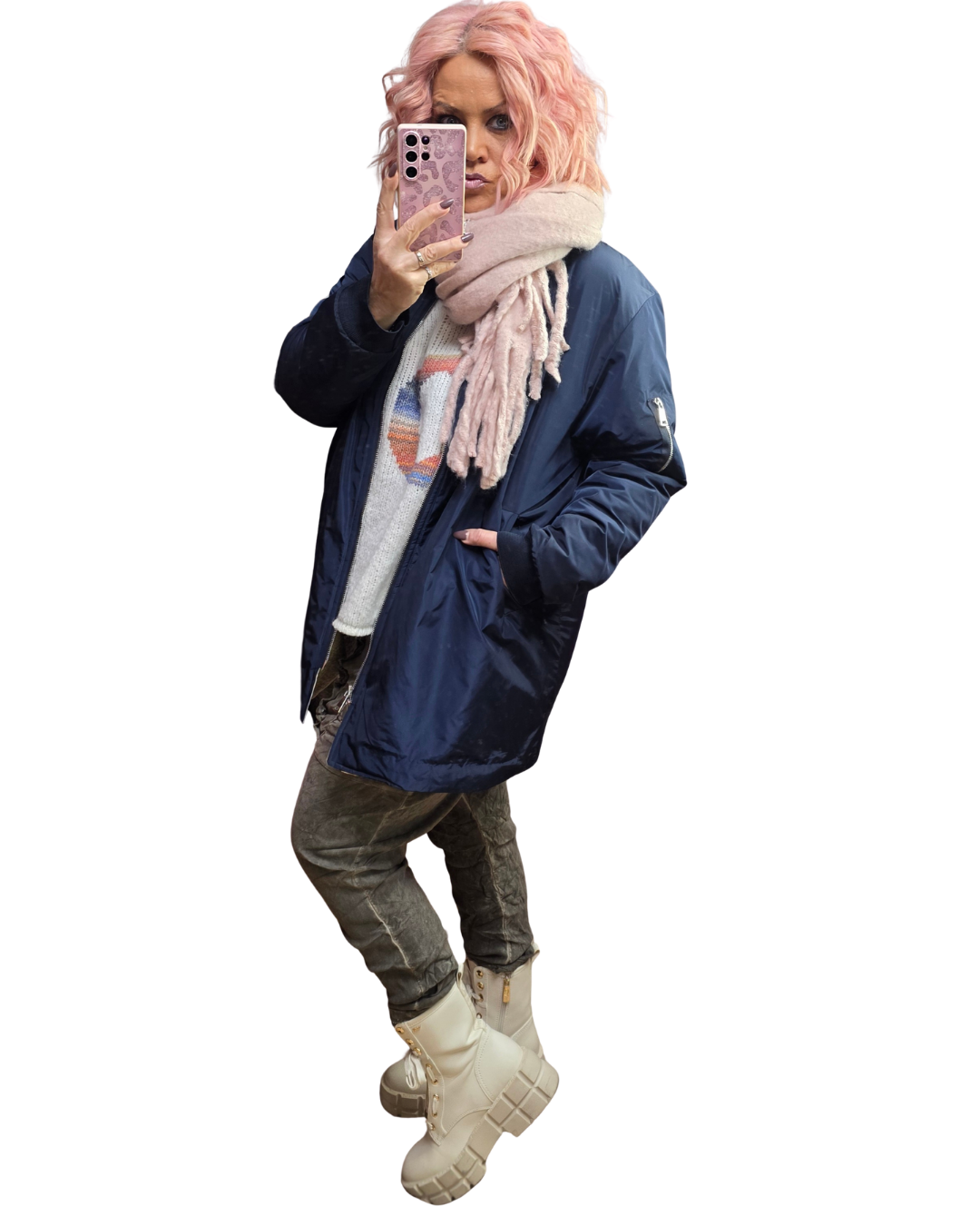 Bomberjacke halblang mit Teddyfutter Dunkelblau