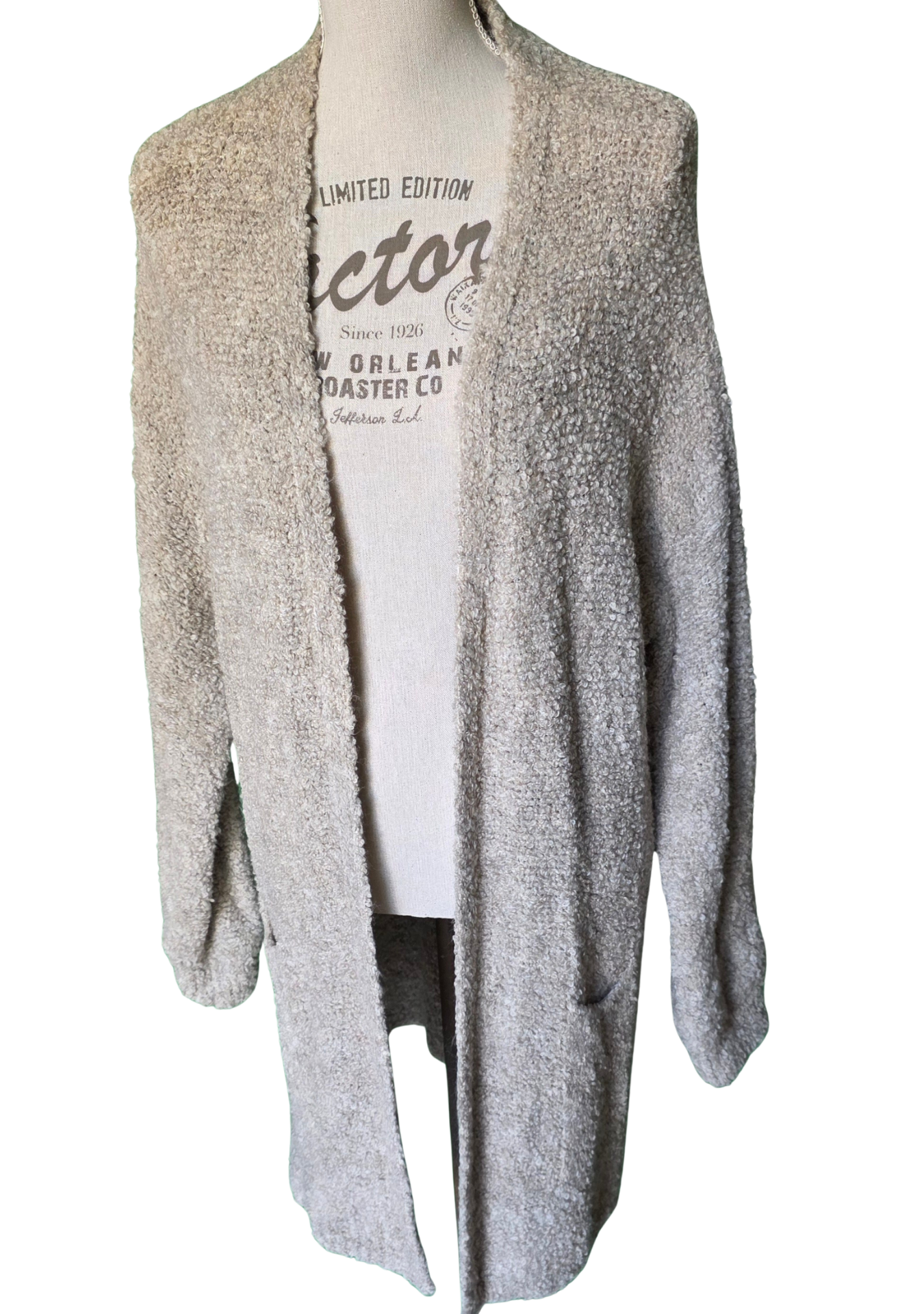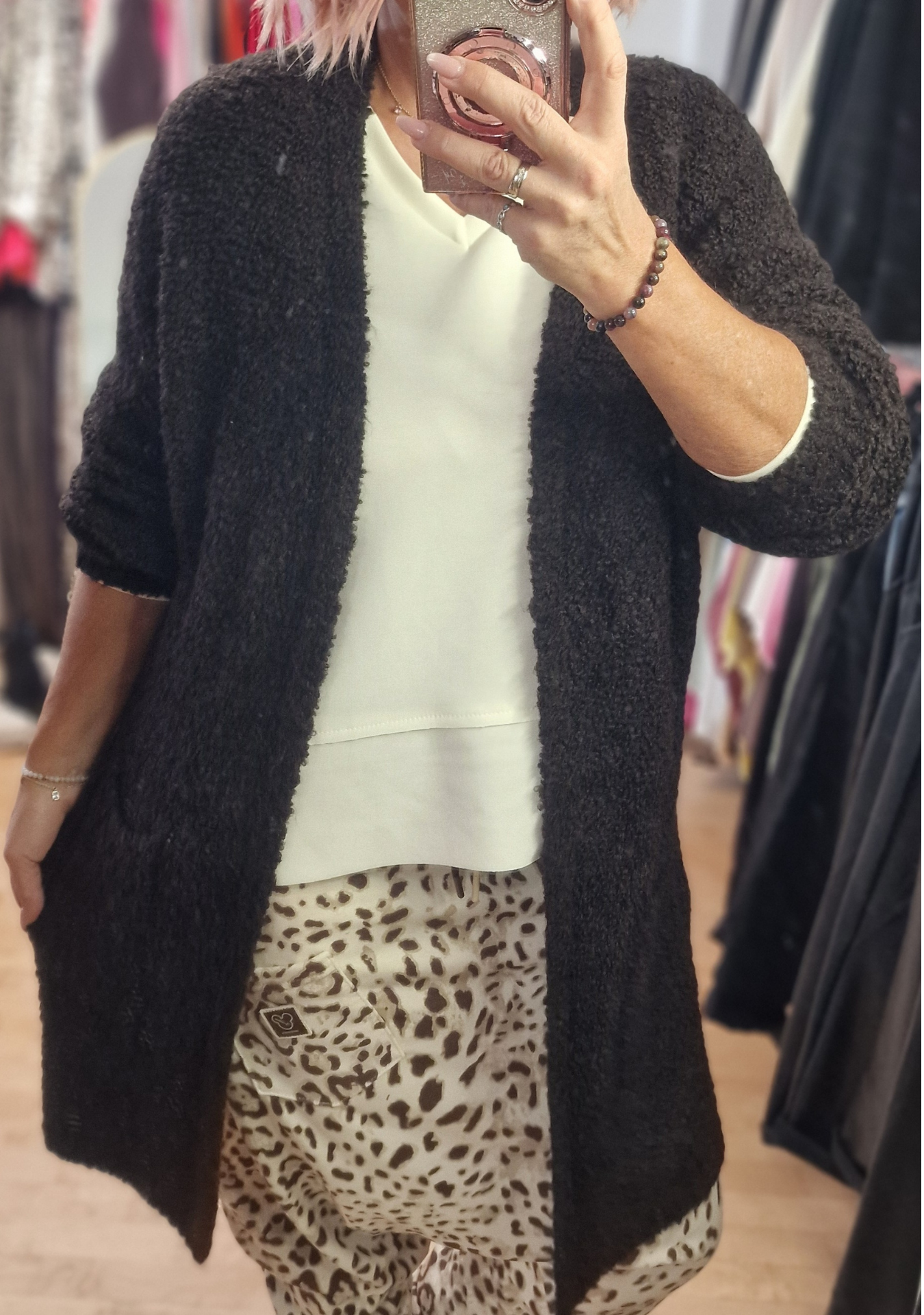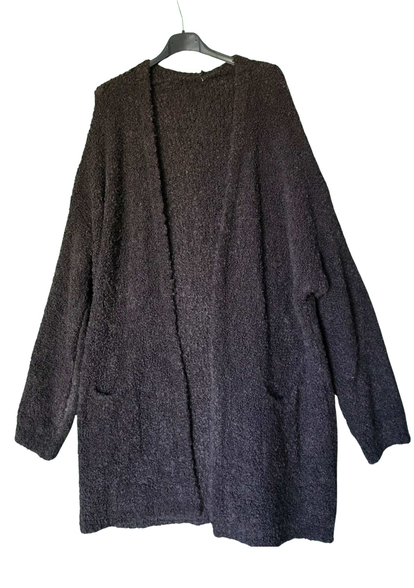 Kuschelig, elegant und zeitlos – diese lange Bouclé Strickjacke ist ein echtes Highlight für die kühleren Tage. Mit ihrem soften Bouclé-Garn, den praktischen Taschen und der lockeren Passform wird sie schnell zum Lieblingsstück in deinem Kleiderschrank.