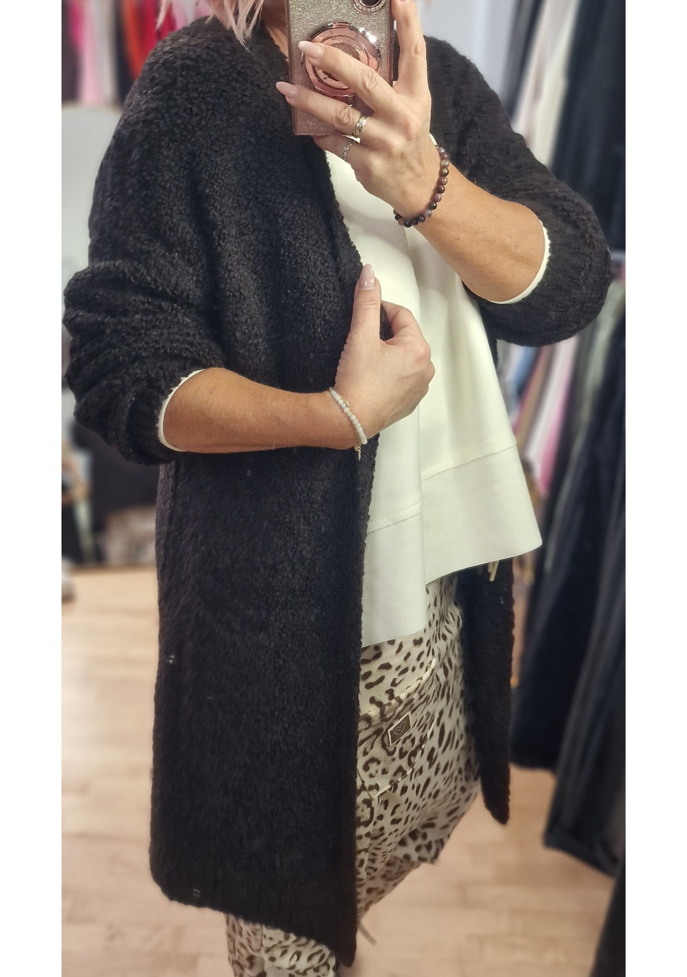 Produktinformationen "Bouclé Strickjacke – Beige & Schoko "