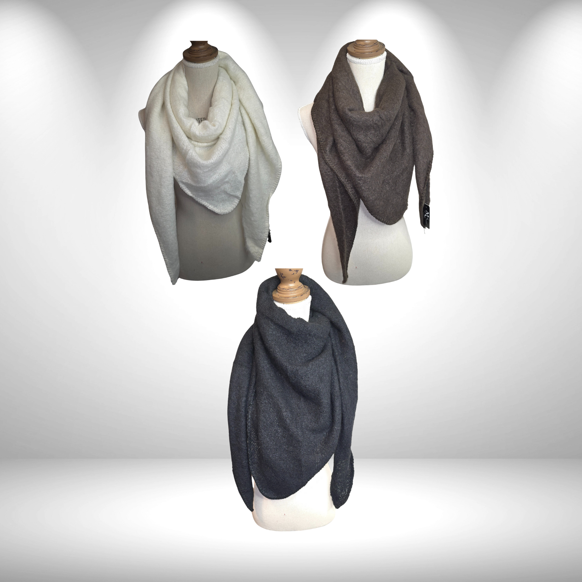 Der Dreiecksschal Flauschi fühlt sich herrlich flauschig an und lässt sich vielseitig stylen, egal ob lässig über die Schultern oder kuschelig um den Hals gelegt.