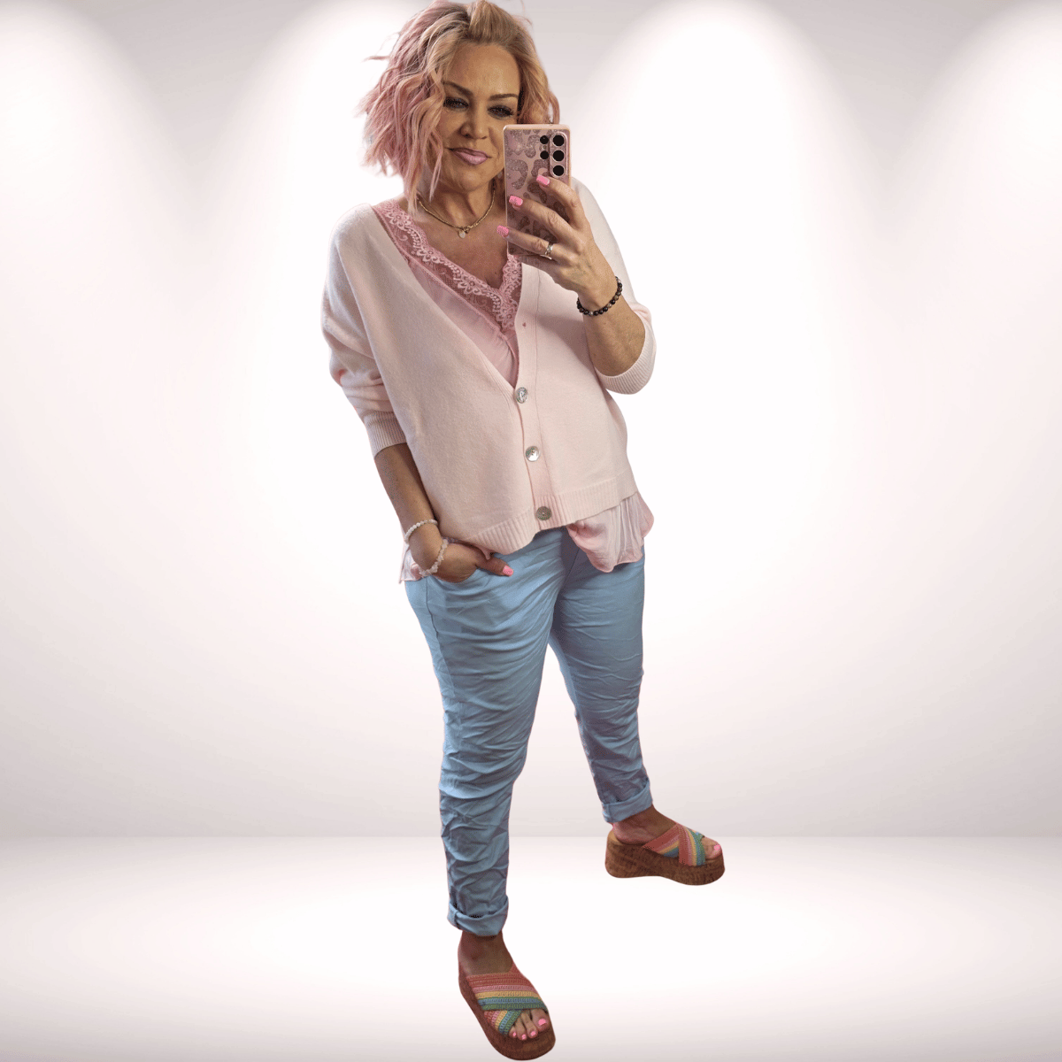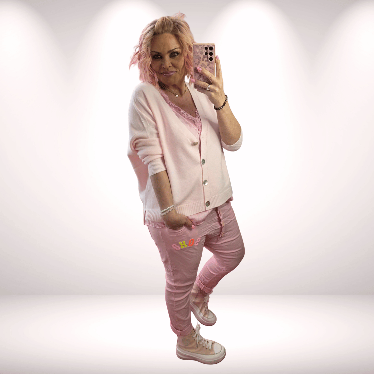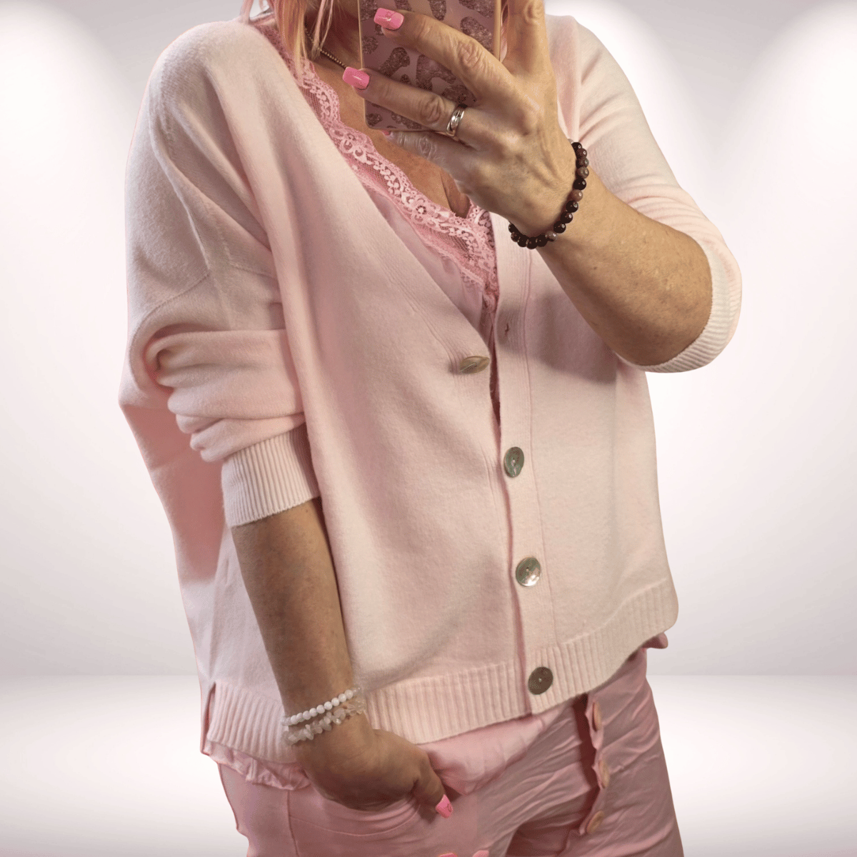 Edle Strickjacke mit Perlmuttknöpfen – rosa