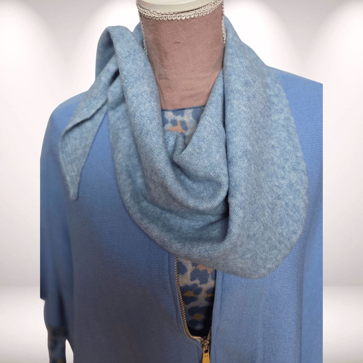 Das besondere Highlight ist die praktische Öffnung im Schal, die dir verschiedene Styling-Varianten ermöglicht. Einfach durchziehen, locker drapieren oder modern knoten – der Schal bleibt perfekt in Form und sitzt den ganzen Tag bequem.