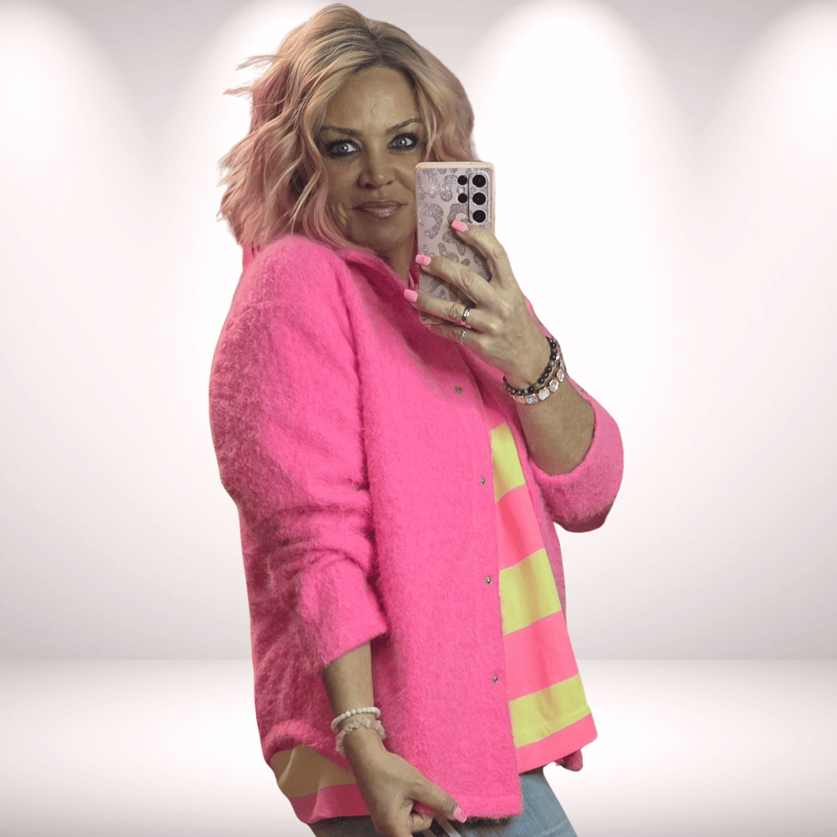 Diese Hemdjacke in Neonpink ist ein echtes Statement-Piece für auffällige, moderne Looks. Die leuchtende Farbe zieht alle Blicke auf sich und verleiht deinem Outfit sofort einen frischen, trendigen Touch.