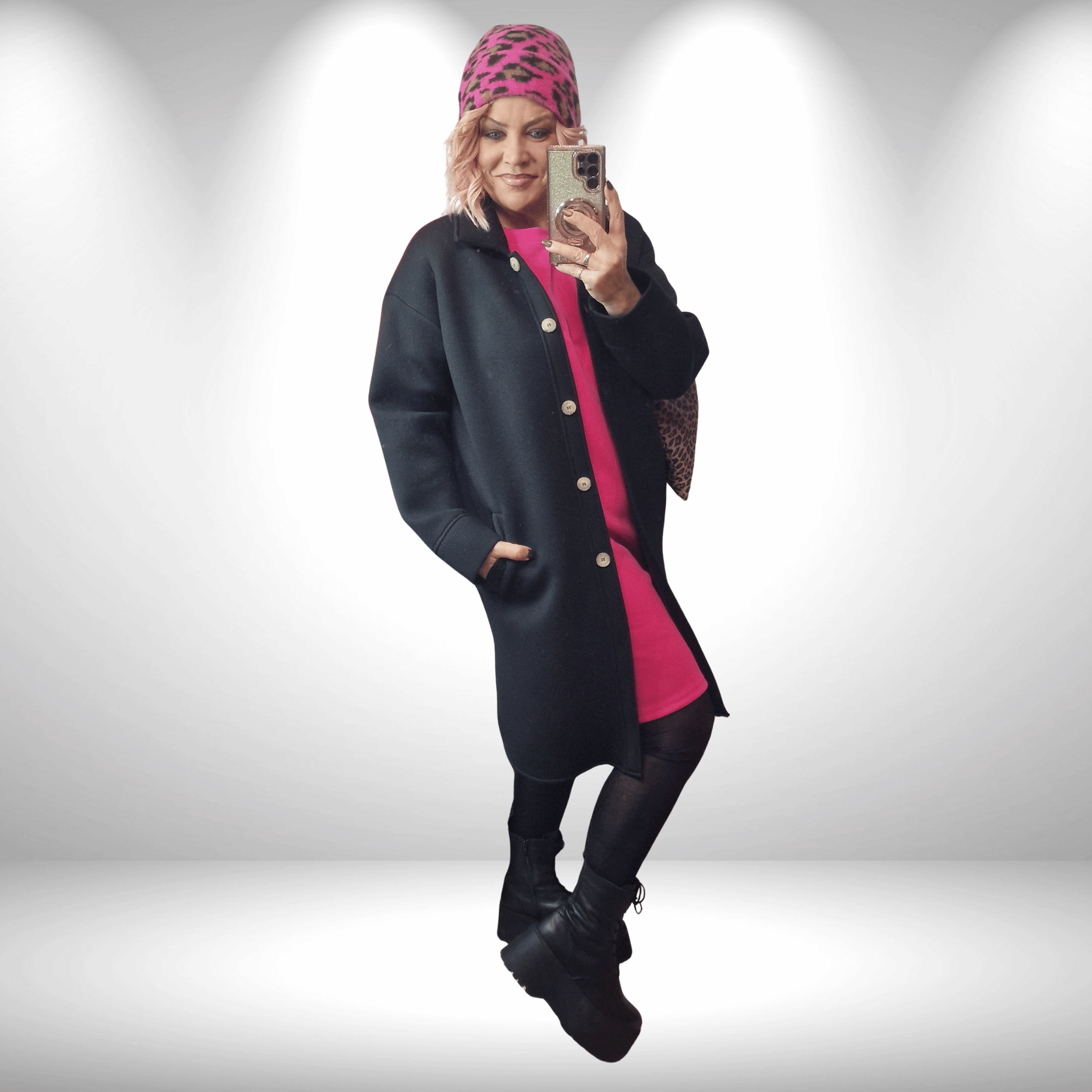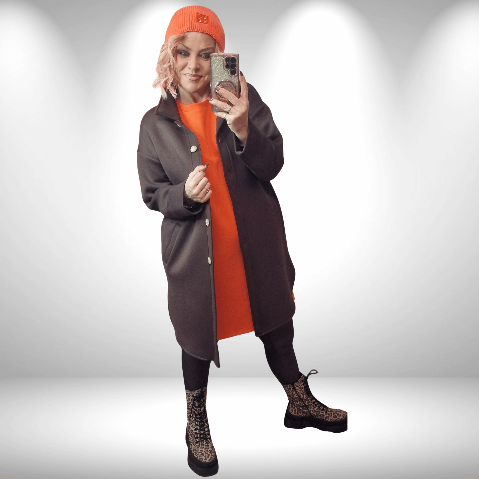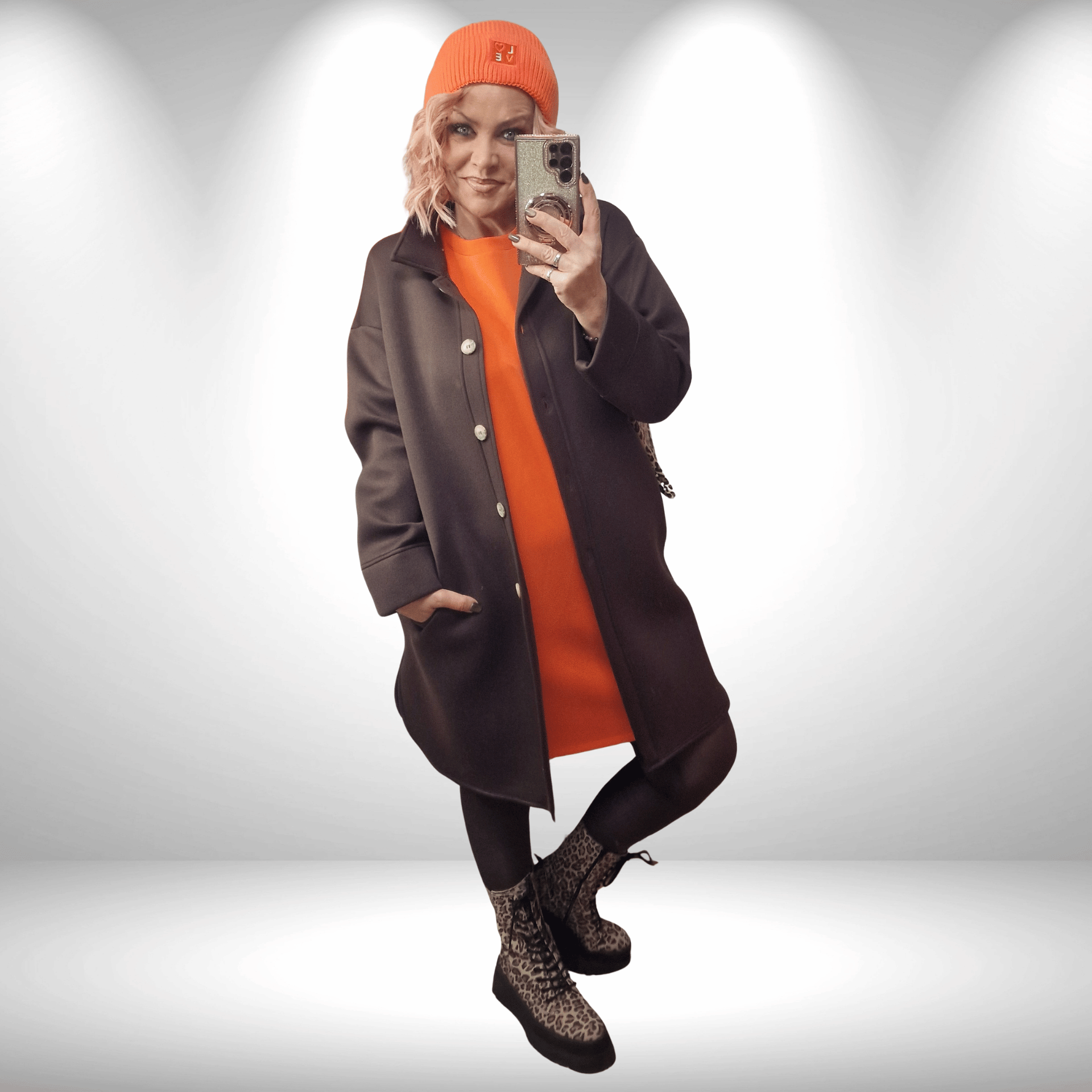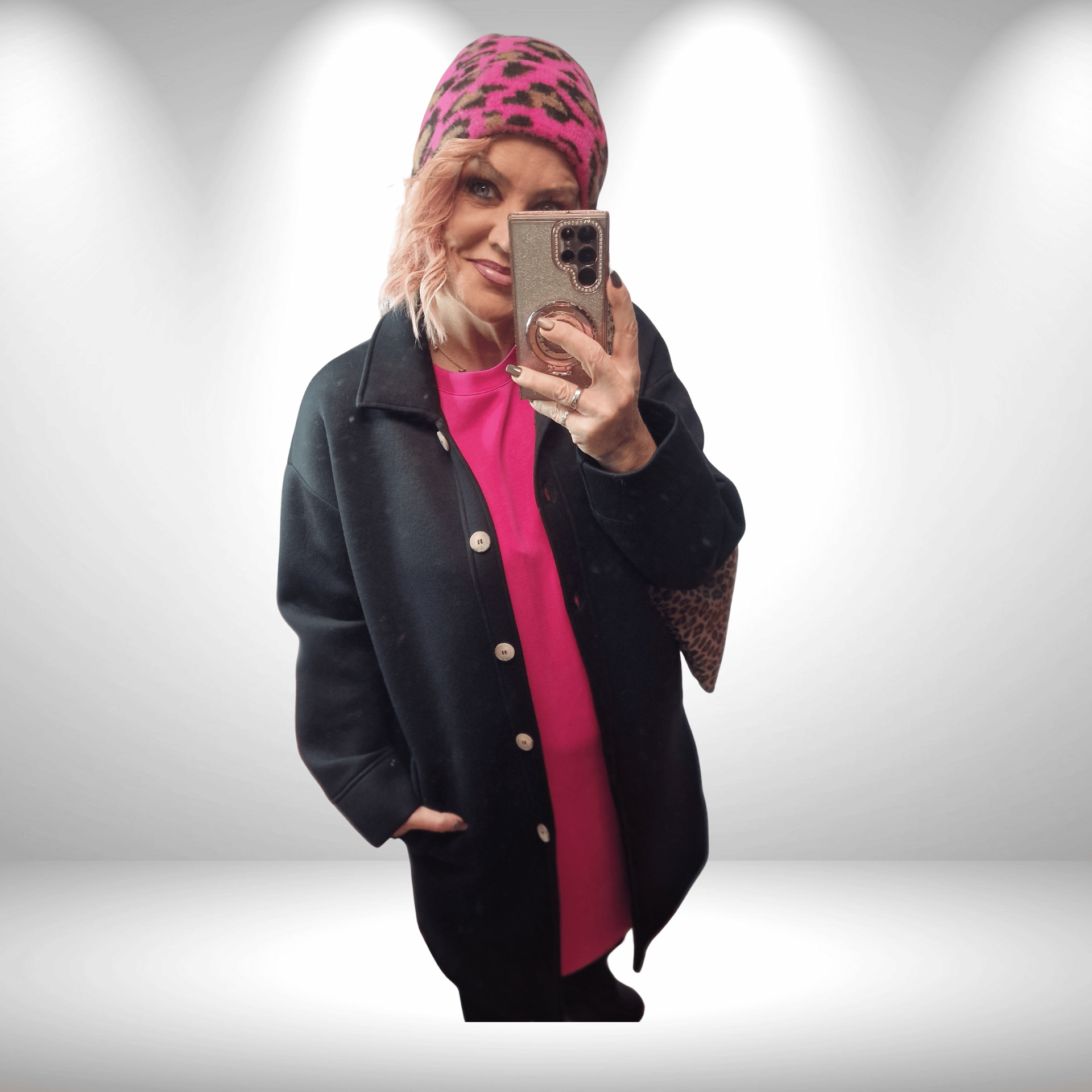 Diese lange Hemdjacke ist ein stylischer Allrounder für Herbst Winter ! Der lockere Schnitt mit seitlichen Schlitzen sorgt für schöne Bewegungsfreiheit, während die seitlichen Eingrifftaschen für den lässigen Look und praktischen Komfort stehen.