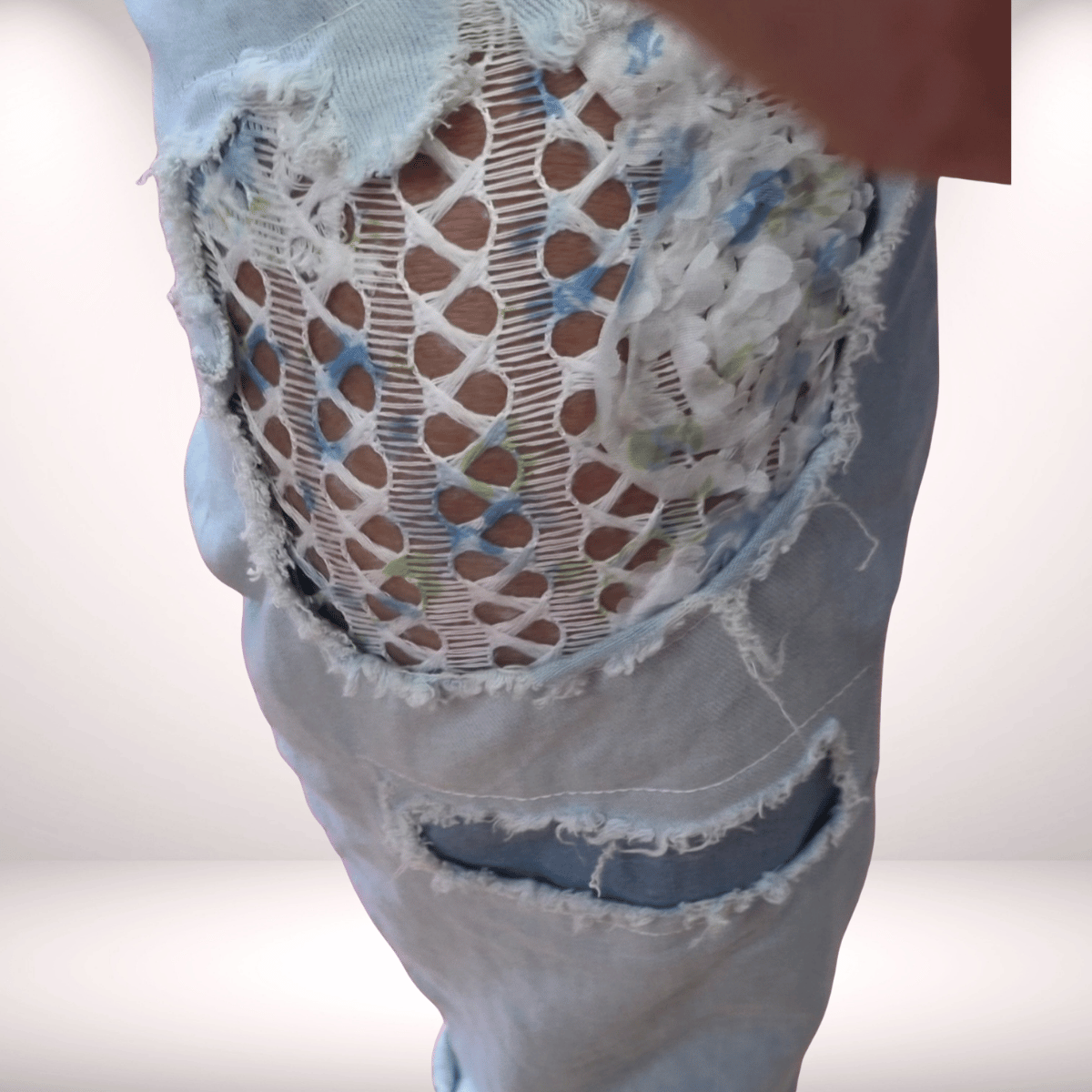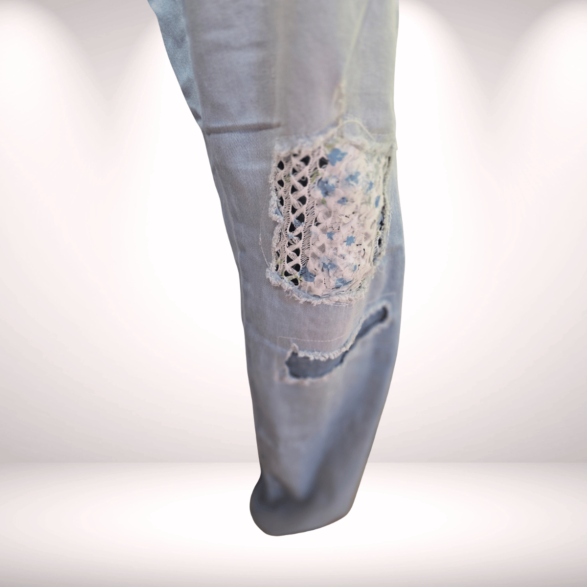 Diese Jeans „Flower Power“ ist ein echter Hingucker und verbindet lässigen Denim-Style mit einem femininen Blumen-Design. Die unterlegten Destroyed-Löcher verleihen der Hose einen modernen Look, während die floralen Details für eine besondere, verspielte Note sorgen.