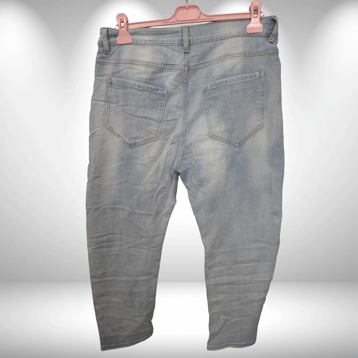 Diese Jeans in heller Waschung überzeugt mit extra stark eingenähten Flicken, die dem Look einen coolen, modernen Charakter verleihen und gleichzeitig für Langlebigkeit sorgen. Der bequeme Sitz und die hochwertige Verarbeitung machen sie zum perfekten Begleiter für Alltag, Freizeit und trendige Casual-Outfits. ✨