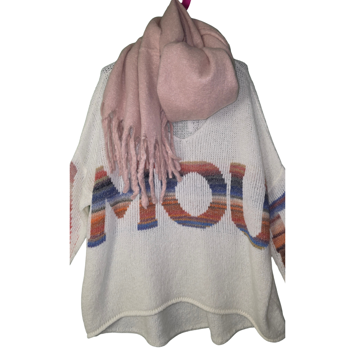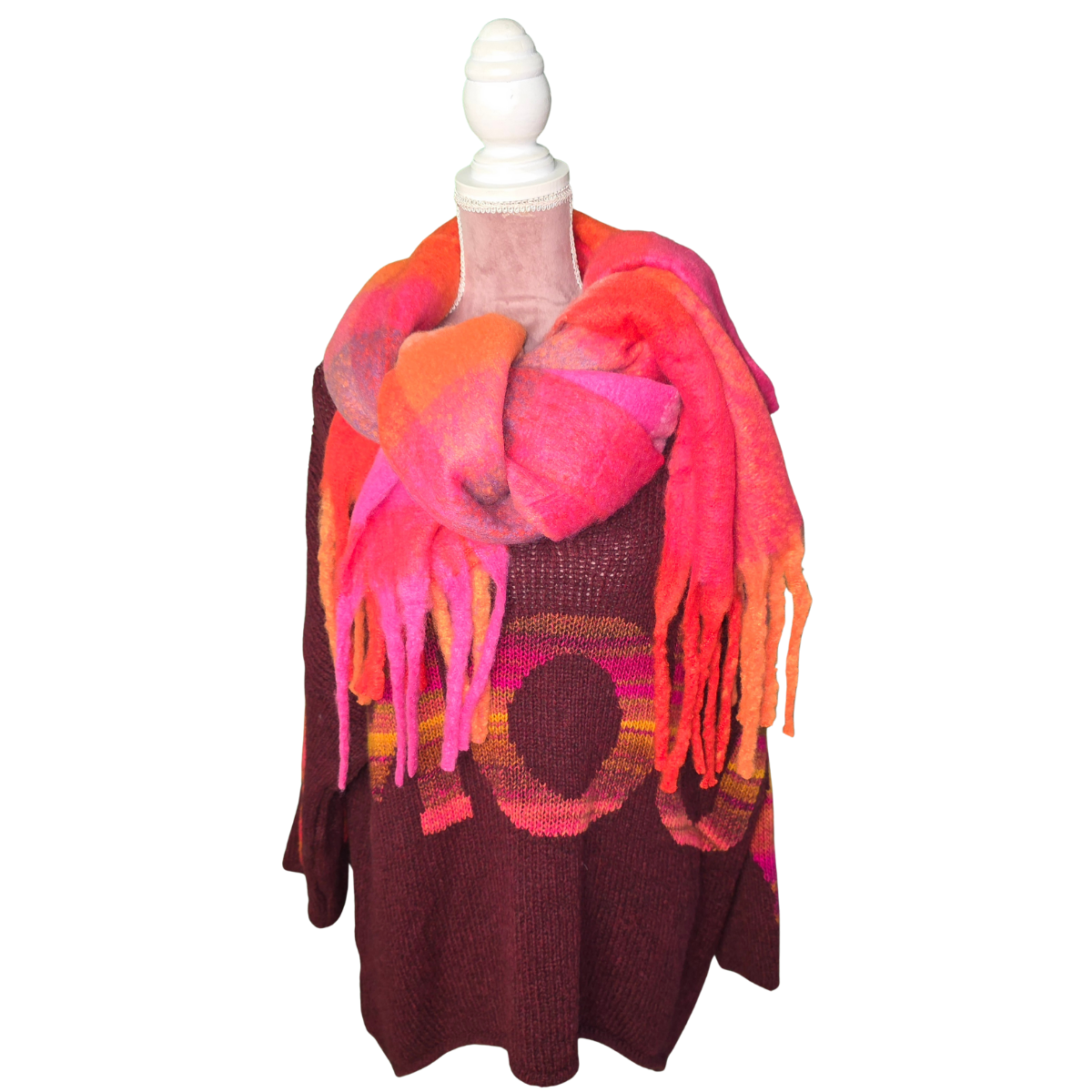 Ein Must-have für den Winter! Der kuschelig weiche Schal hält dich nicht nur warm, sondern setzt mit seinem farbenfrohen Design stylische Akzente. Ob in Schoko, Creme oder Altrosa – oder im bunten Pink-Orange-Rot-Mix, dieser Schal verleiht jedem Outfit das gewisse Etwas.