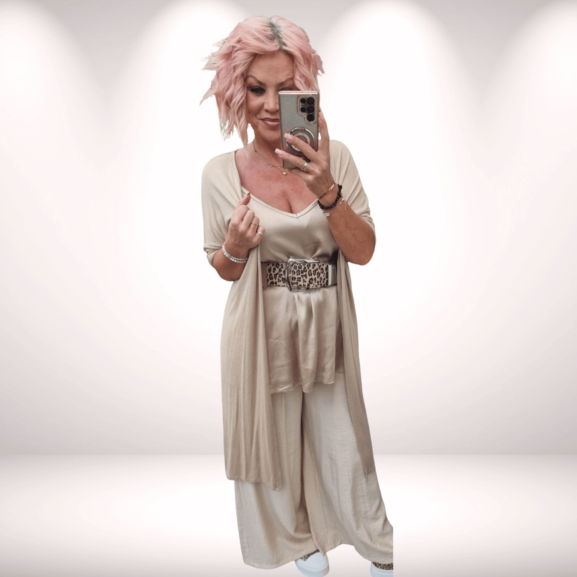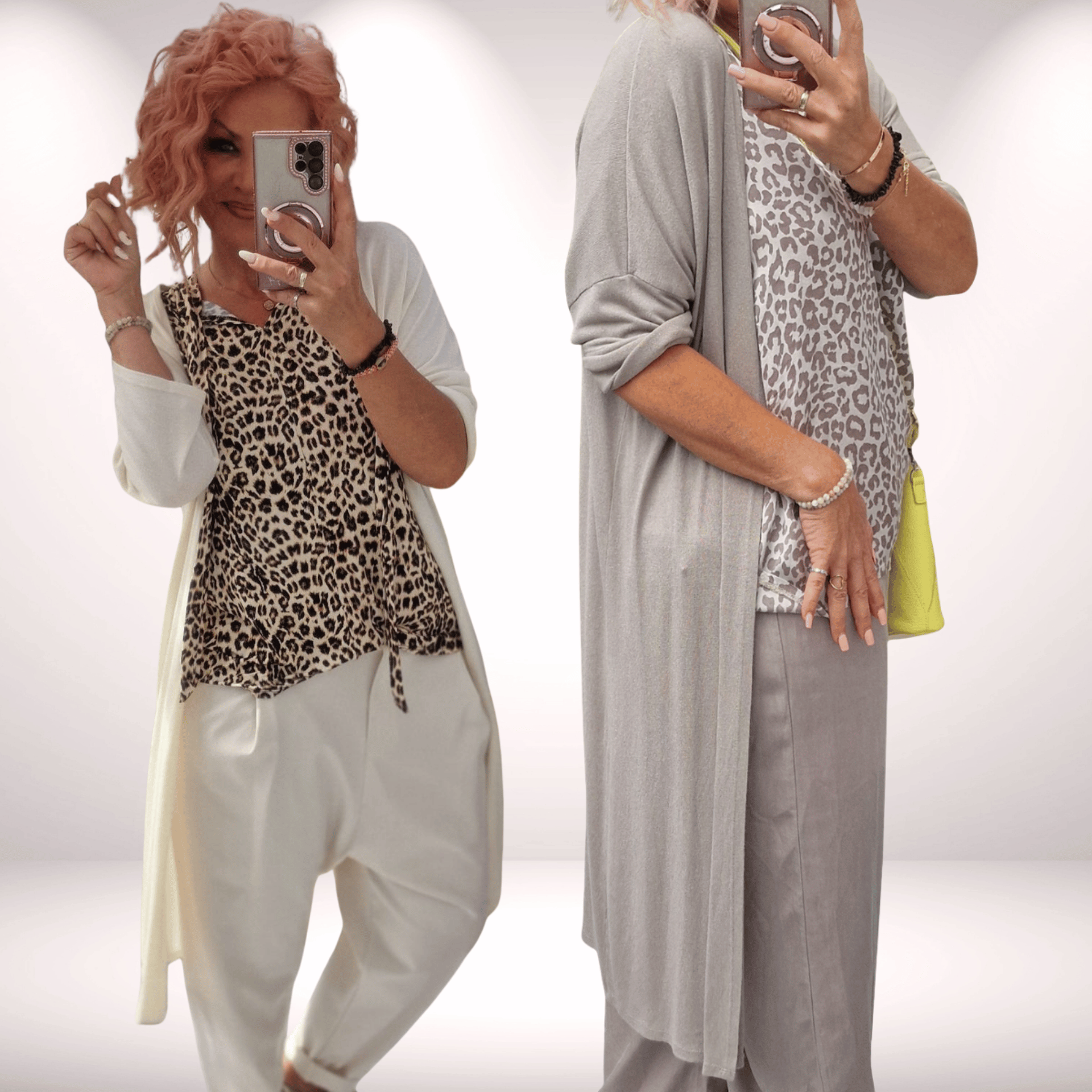 Der feminine Longcardigan dein neuer Liebling für lässige Looks und gemütliche Stunden! Gefertigt aus super weichem Viskose-Feinstrick (95% Viskose, 5% Elastan), fühlt er sich an wie eine zweite Haut – leicht dehnbar, atmungsaktiv und einfach unschlagbar bequem.