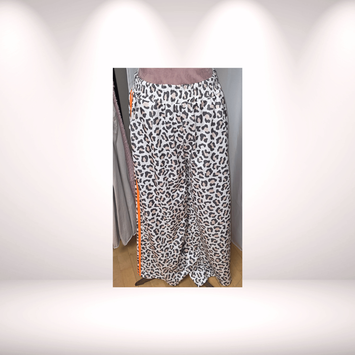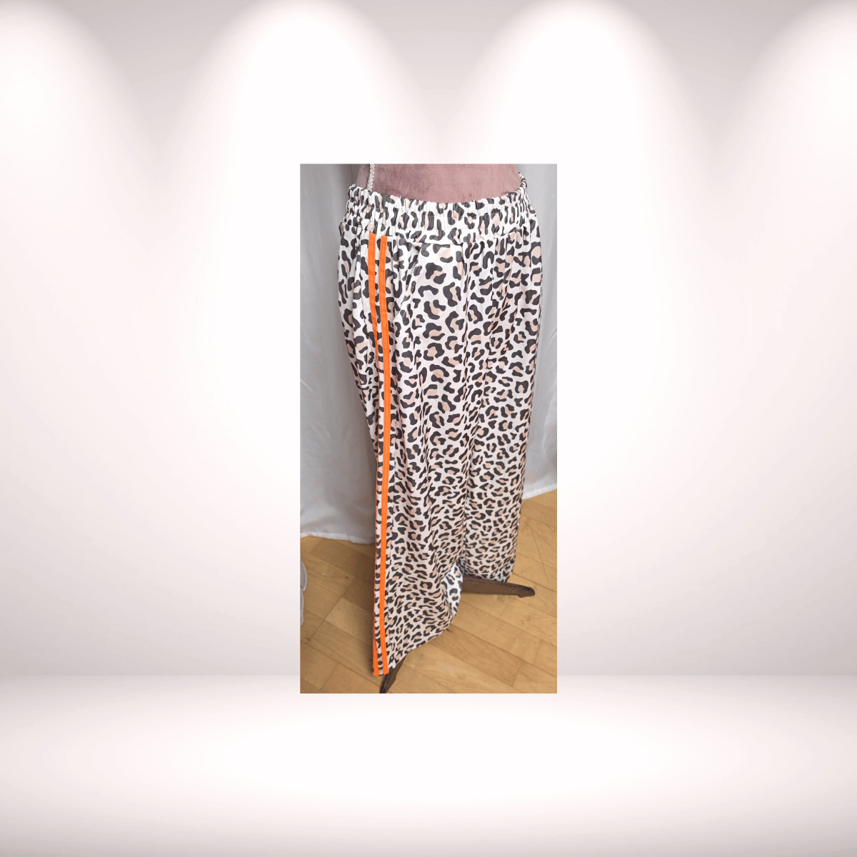 Die Leo Marlene „Stripes“ ist ein absolutes Trend-Highlight für Frühjahr 2026. Das Leo-Allover-Muster verleiht der Hose einen starken Fashion-Charakter, während die neon-orangen Seitenstreifen für einen sportlich-modernen Kontrast sorgen und den Look besonders aufregend machen.