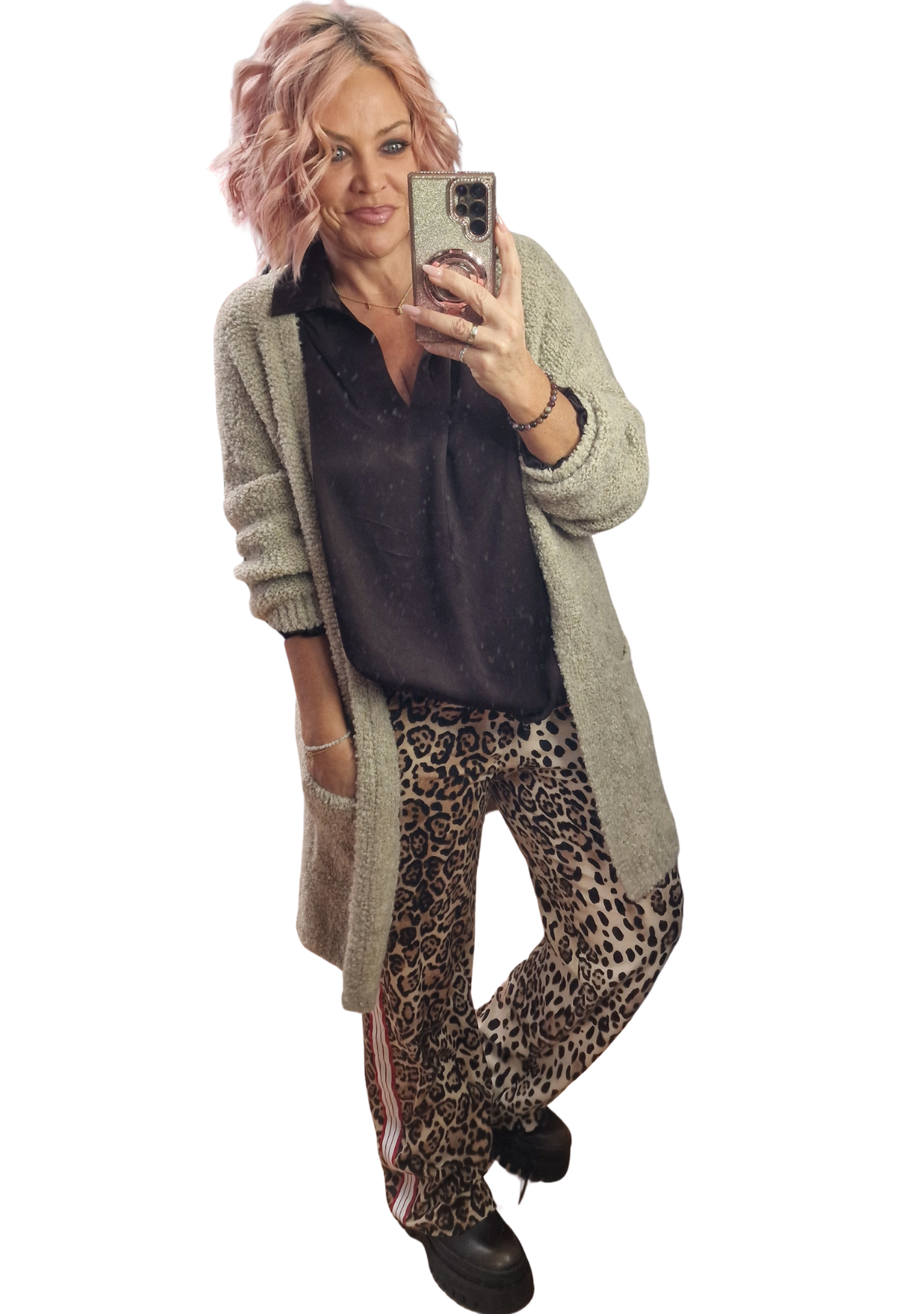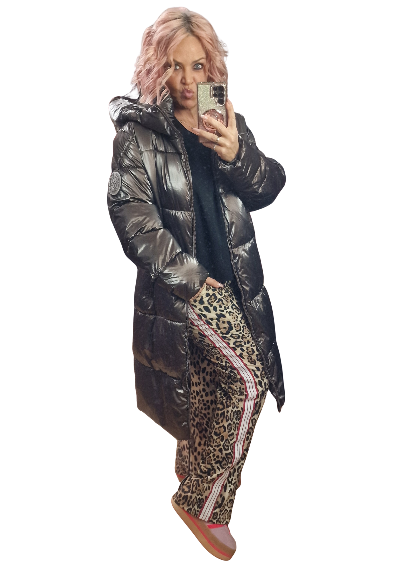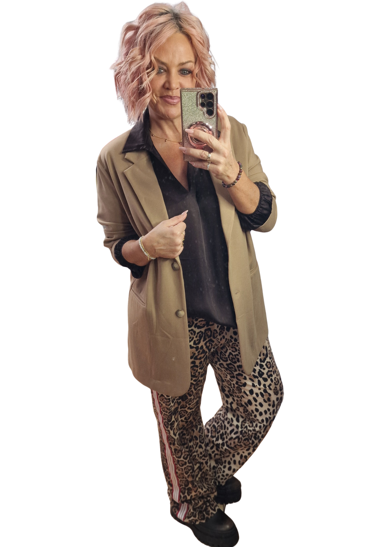 Ein echter Hingucker! Die Leo Marlene Hose mit roten & weißen Streifen kombiniert ein angesagtes Leo-Muster mit sportiven Streifen an der Seite. Lässig, modern und super bequem – perfekt für coole Alltags- oder Ausgeh-Looks.