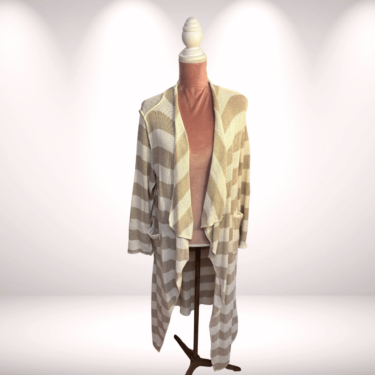 Long Cardigan „Stripes“ - Beige-Offwhite
