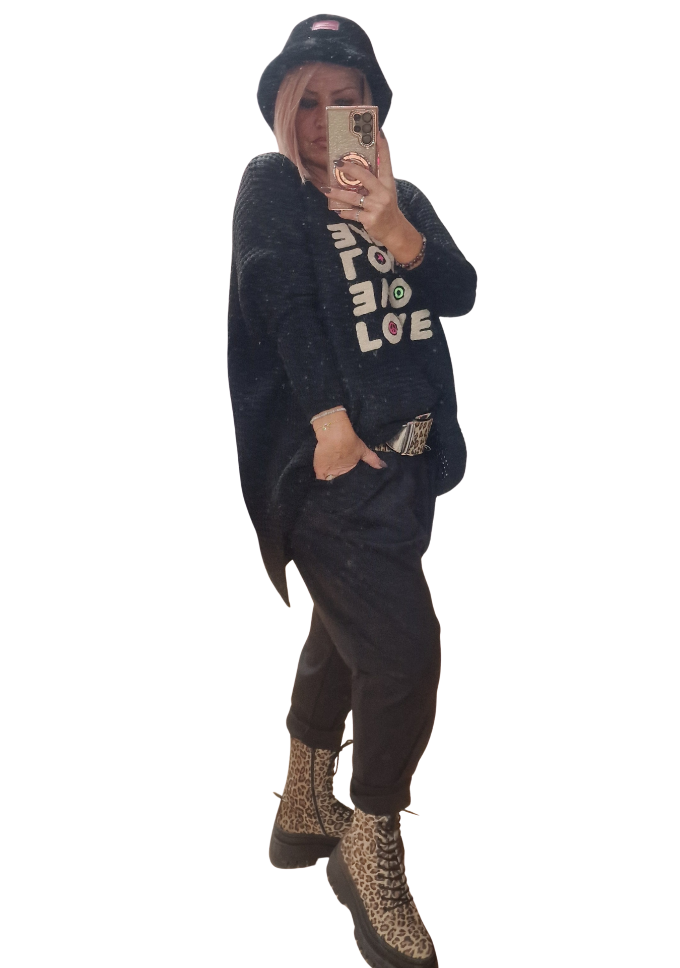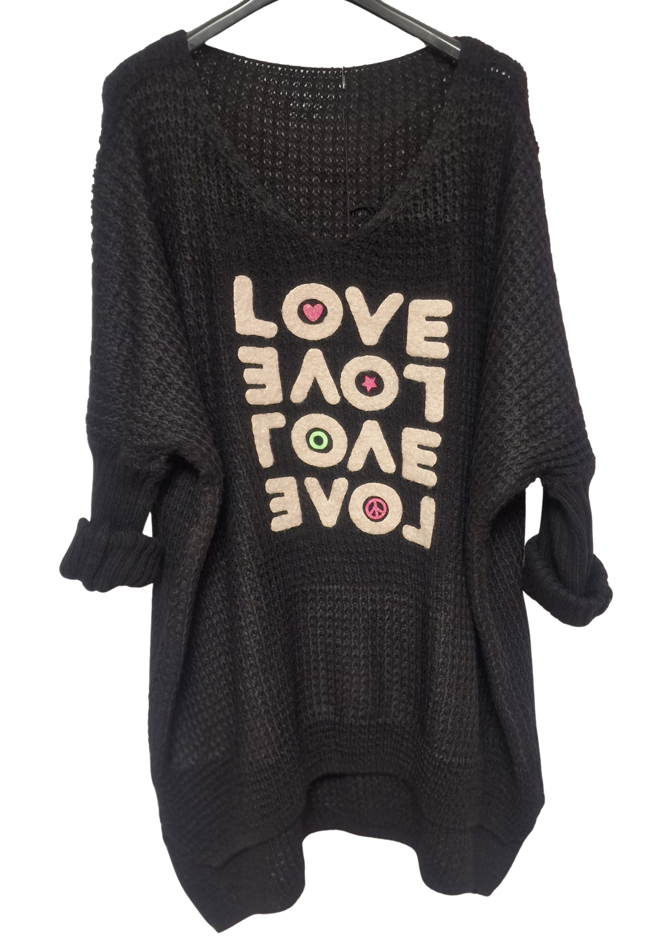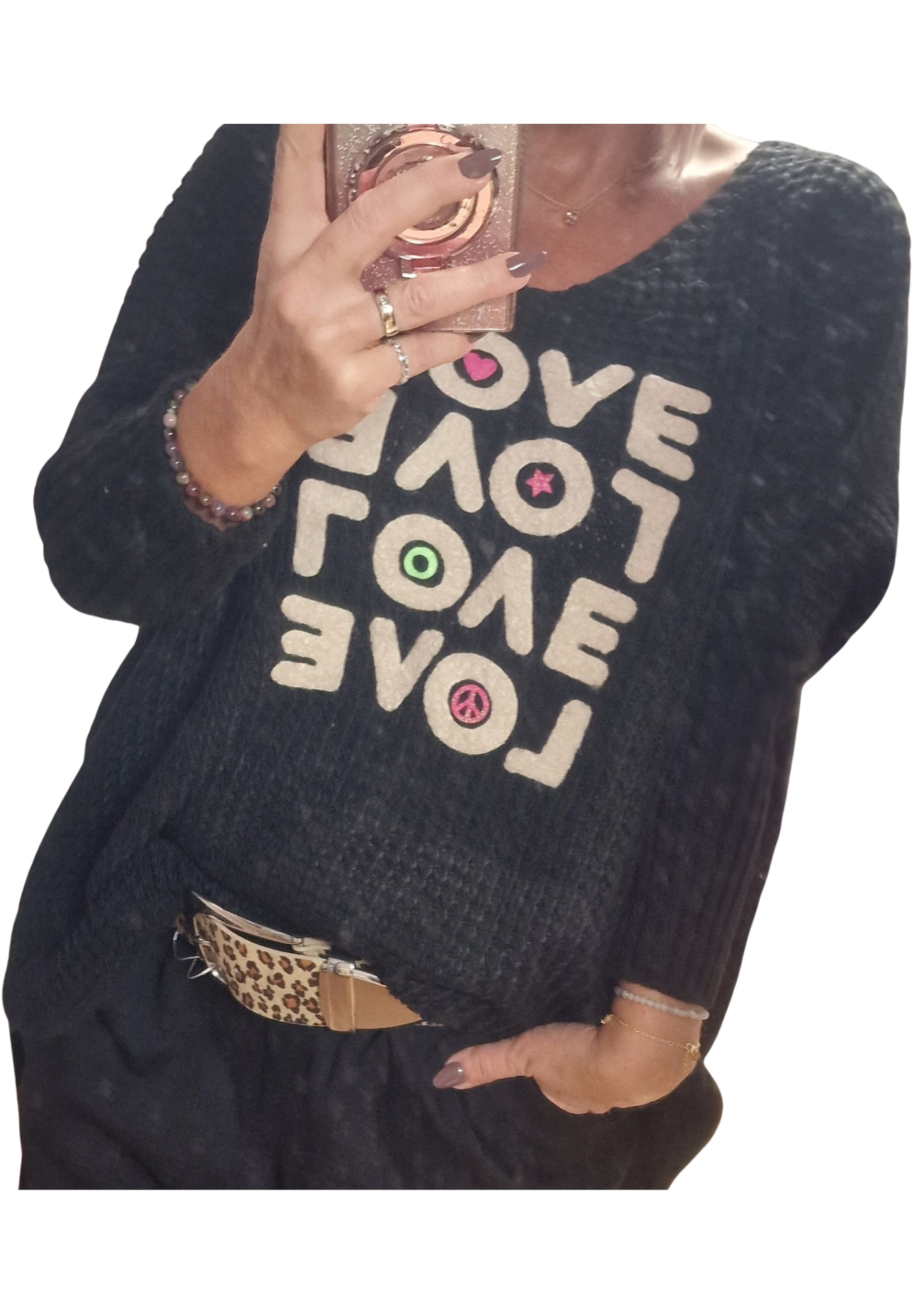 Produktinformationen "Longpulli Love & Vokuhila Black "