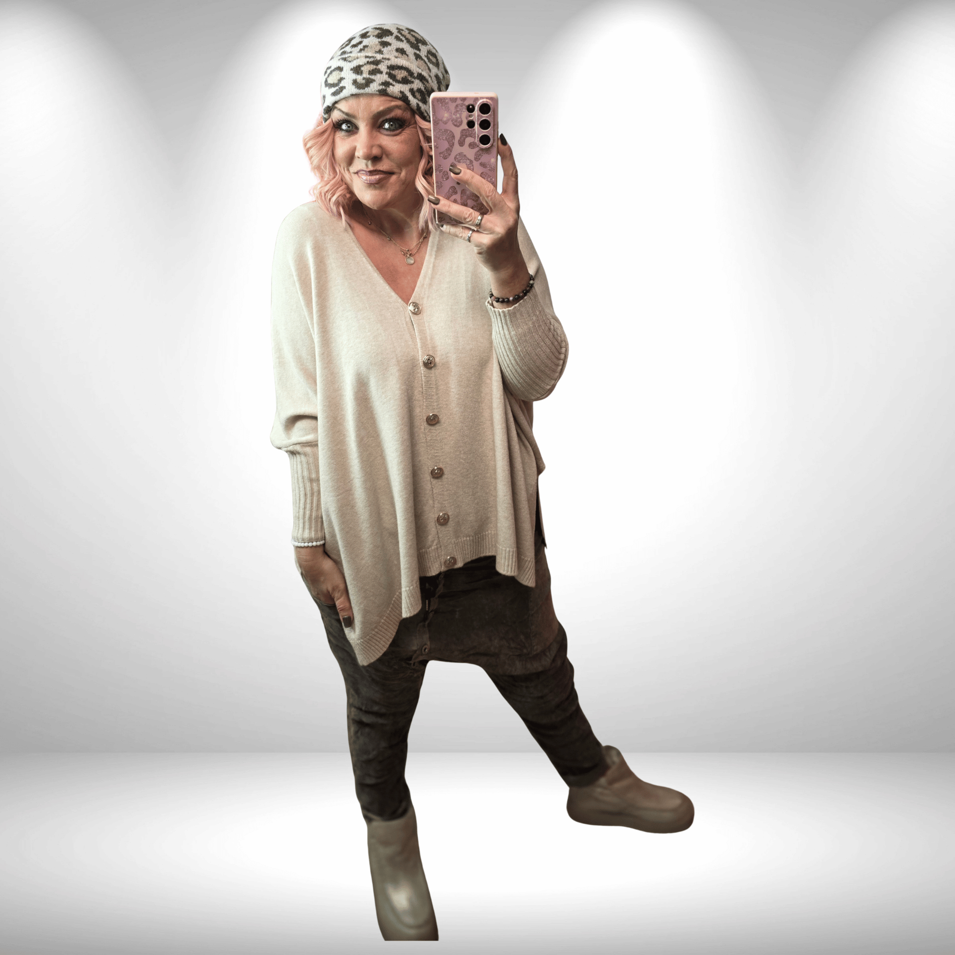 Trendige Strickmütze im stylischen Leo-Muster in warmen Beige-Braun-Tönen – perfekt für Herbst & Winter. Angenehm weich, warm und super kombinierbar.
