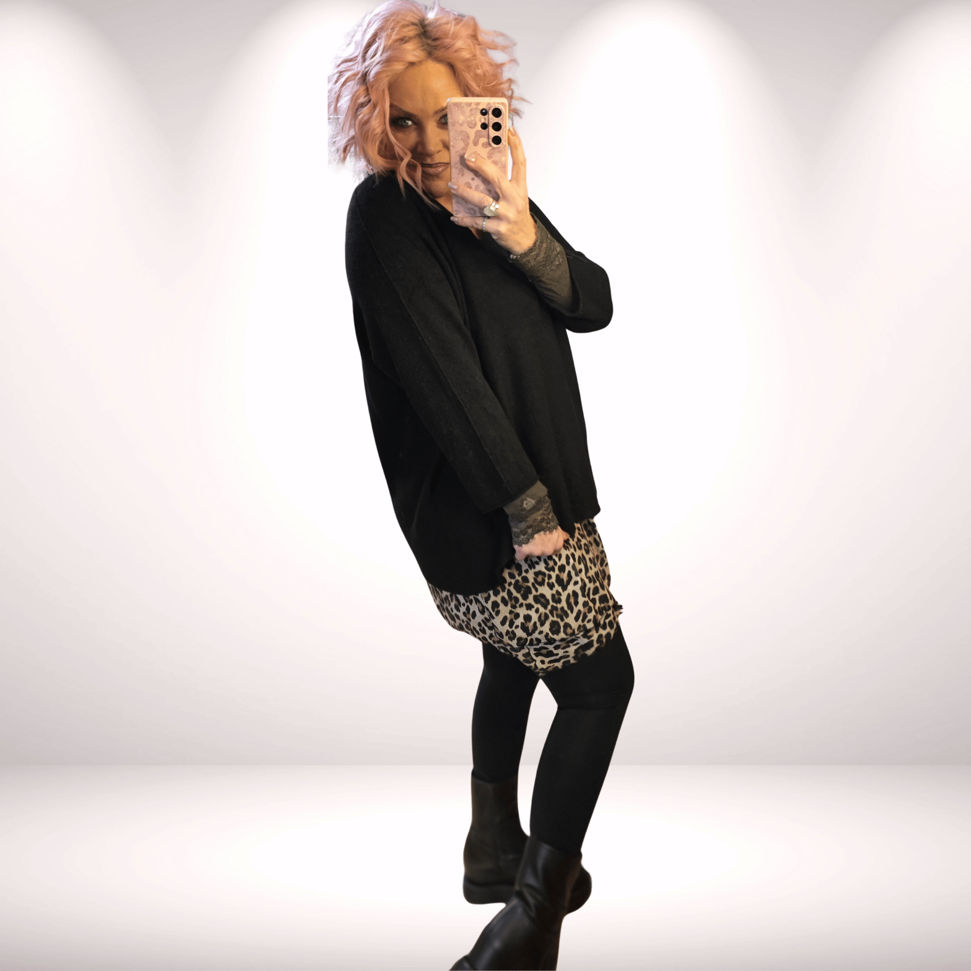 Zwei Styles, ein Lieblingsstück! 💕 Dieser 2-in-1 Rock lässt sich klassisch als Rock tragen oder stylisch als Blusenverlängerung – perfekt für moderne Layering-Looks. Der doppellagige Stoff fällt fließend, schmeichelt der Silhouette und fühlt sich angenehm auf der Haut an. Ideal für Alltag, Büro oder trendige Outfits mit Leo-Akzent. 🐆