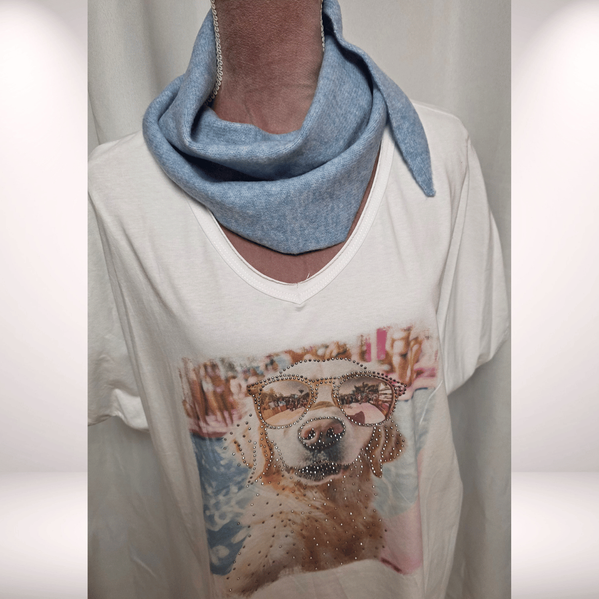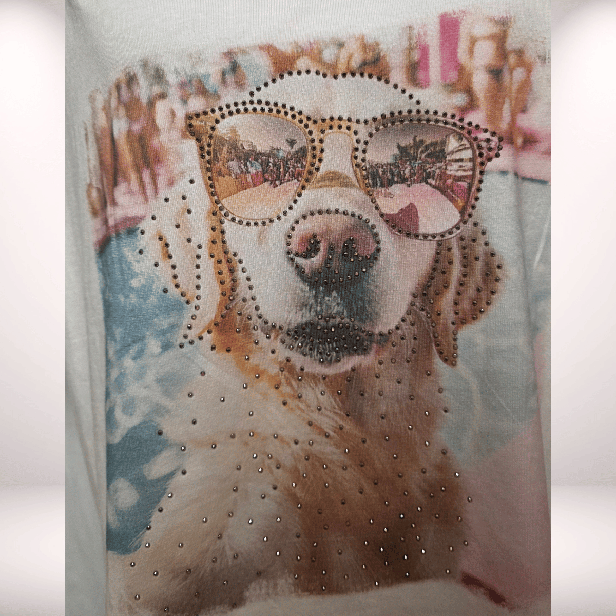 Dieses Shirt mit liebevollem Labrador-Hunde-Print ist ein echter Blickfang und vereint Lässigkeit mit einem femininen Glam-Akzent. Die pastellrosa Glitzersteinchen setzen dezente, edle Highlights und verleihen dem Shirt eine besonders weiche, moderne Ausstrahlung.