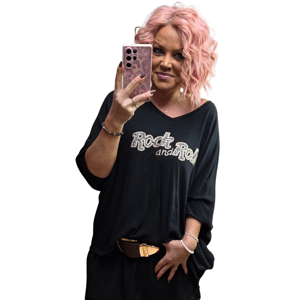 👕 Shirt „Rock & Roll“ – Langarm mit Glitzerprint