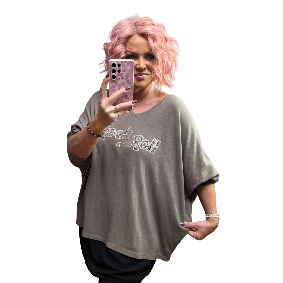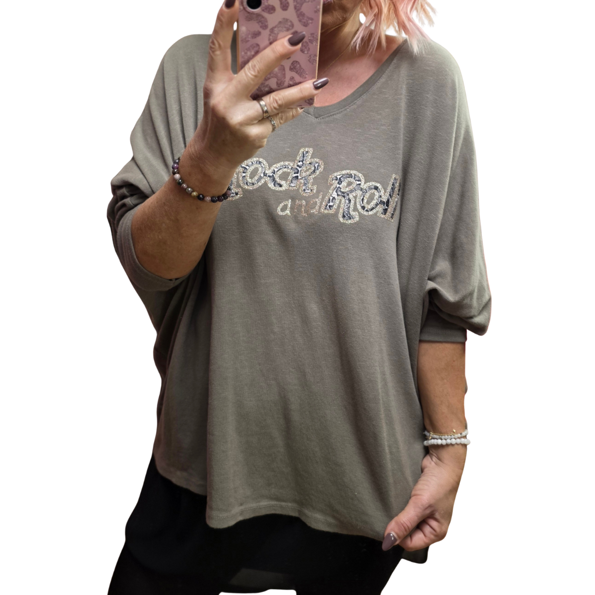 Lässig, bequem und mit einem Hauch Glam! Das Shirt „Rock & Roll“ begeistert mit seinem coolen Print und feinen Glitzer-Details. Der Fledermausärmel-Stil sorgt für einen modernen Oversize-Look und ein superangenehmes Tragegefühl.