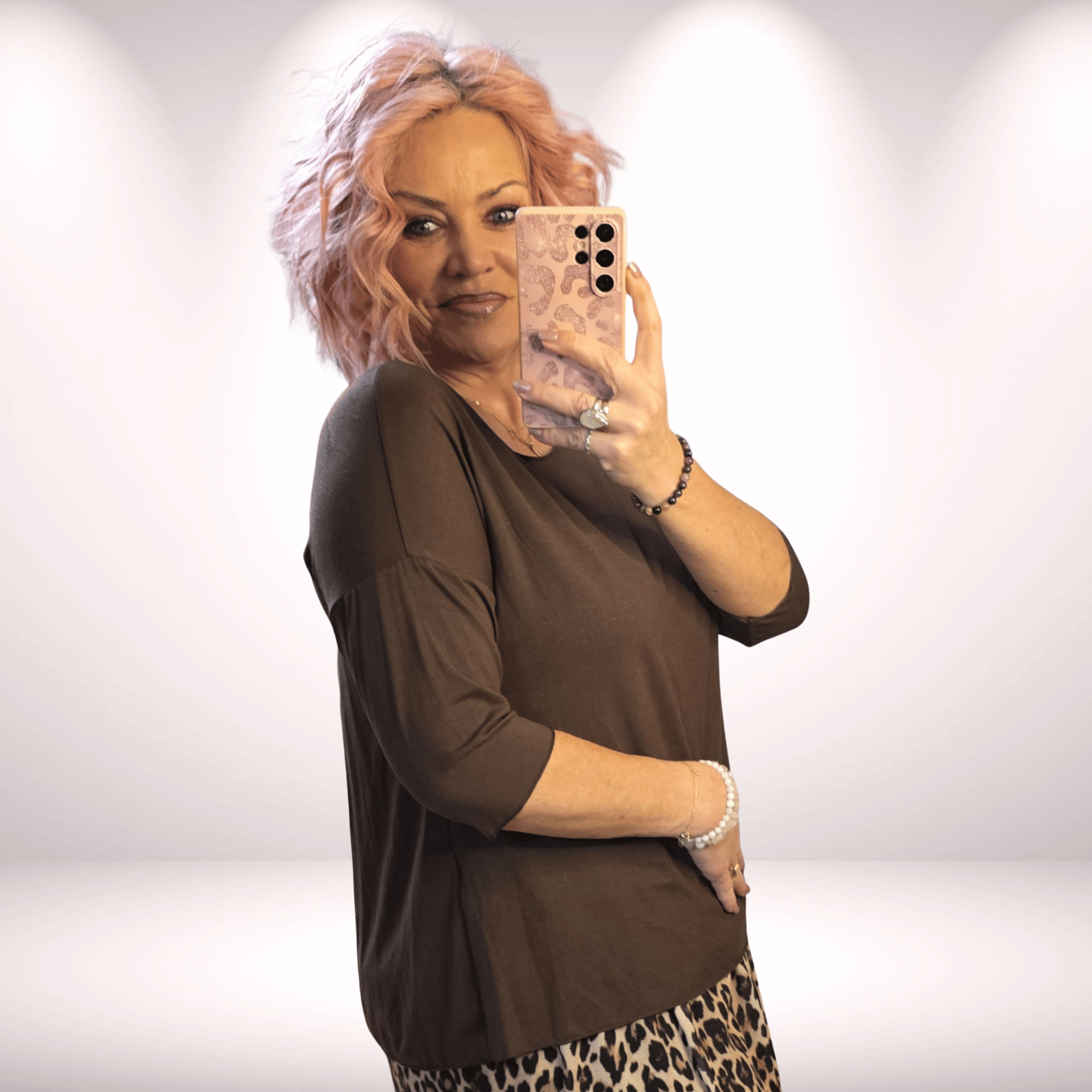 Shirt Sunny halbarm rundhals schwarz/beige/schoko