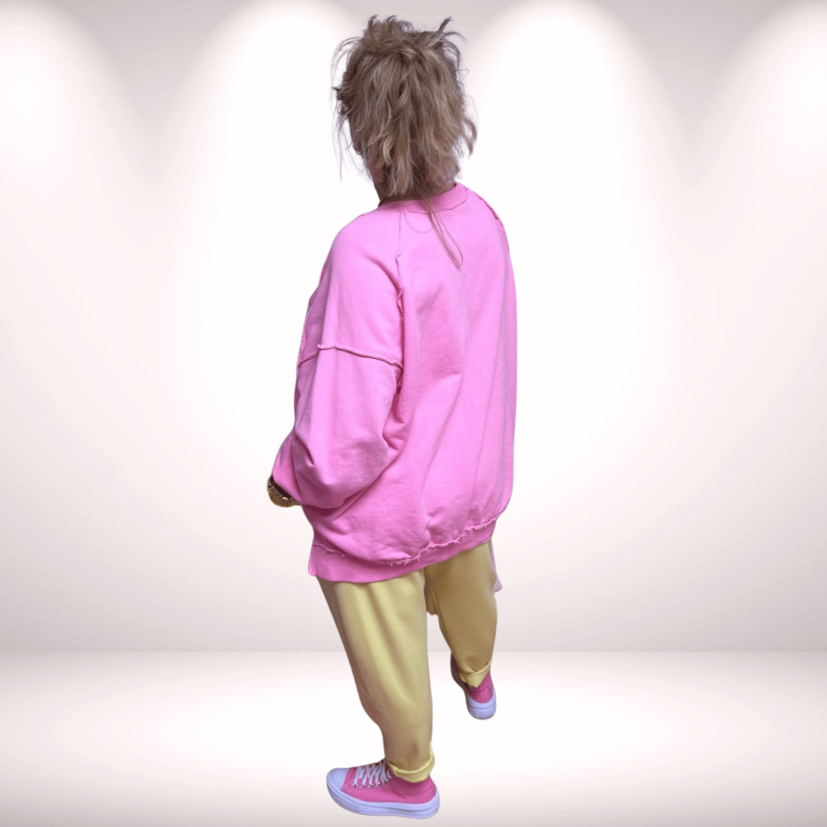 Der leichte Vokuhila-Schnitt (vorne kürzer, hinten länger) fällt locker und schmeichelt der Figur – ideal für einen entspannten, modernen Look. Ob zu Jeans, Baggy oder Leggings: Dieser Sweaty ist ein echtes Wohlfühlteil für den Alltag.