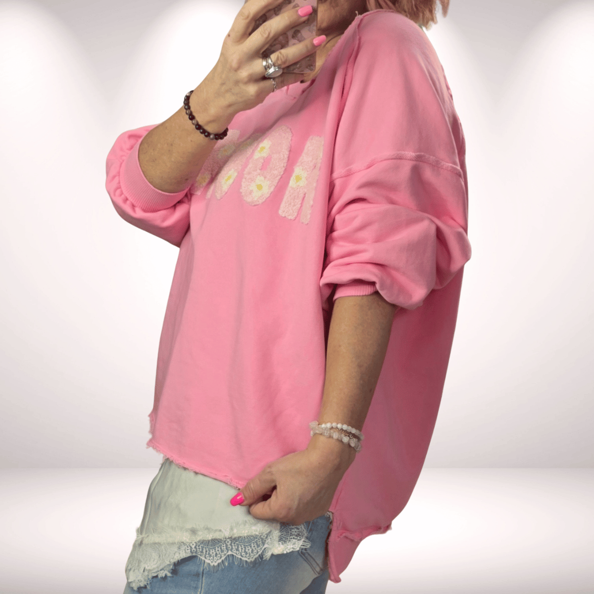Sweaty „Amour“ Spring – babypink | lässiger Frühlingslook mit Statement