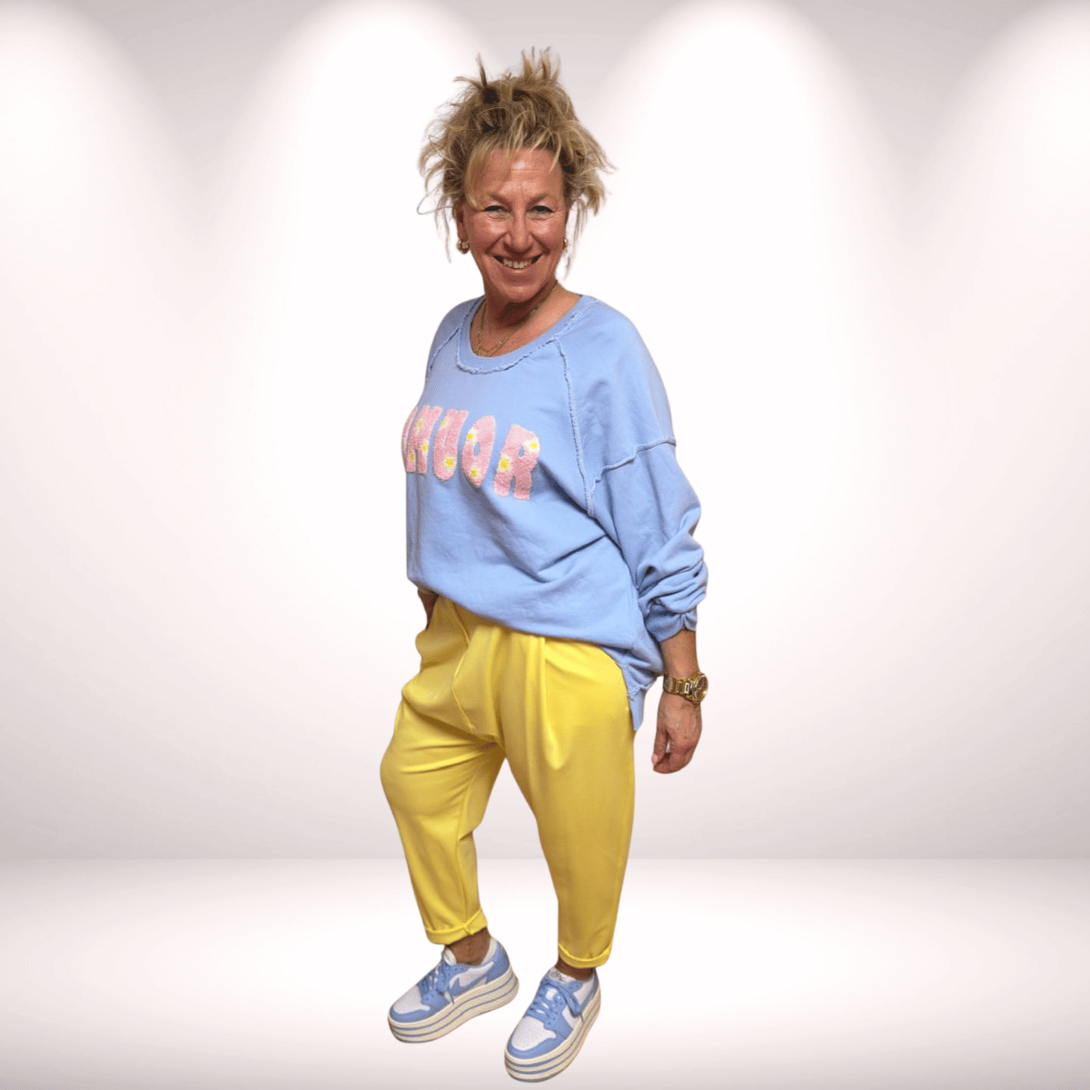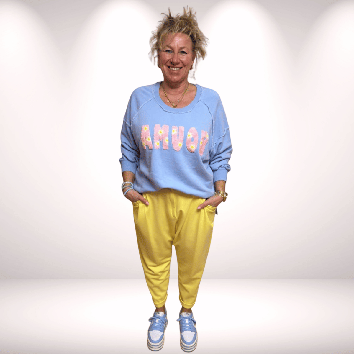 Sweaty „Amour“ Spring – hellblau | lässiger Frühlingslook mit Statement