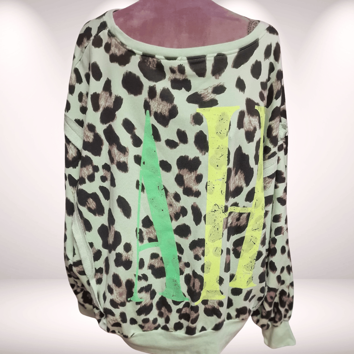 Dieses Oversize-Sweatshirt besticht durch seinen lässigen, weit geschnittenen Style und das auffällige Leopardenmuster. Auf der Vorderseite sorgt eine große, coole Statement-Aufschrift für einen starken Auftritt. Die weitläufigen Ärmel unterstreichen den entspannten Look und machen das Sweatshirt zum perfekten Everyday-Piece mit Trendfaktor.