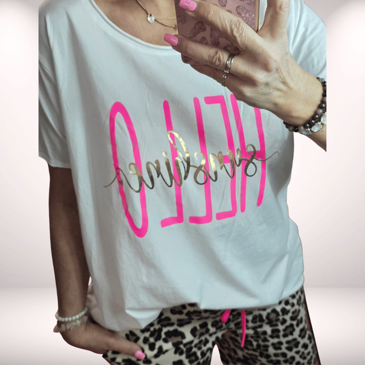 T-Shirt „Hello Sunshine“ – Weiß mit Neon-Gold Print ☀️✨