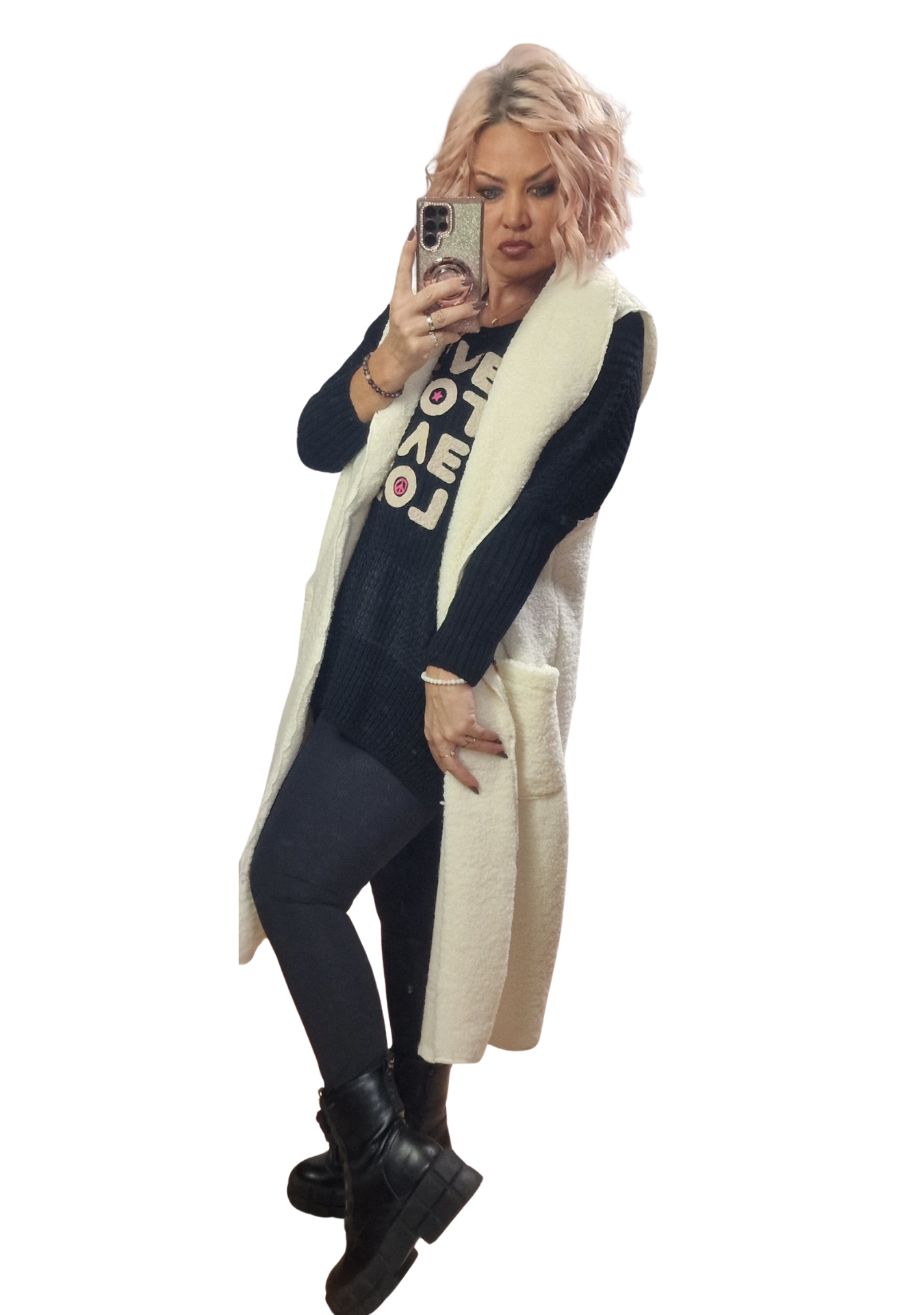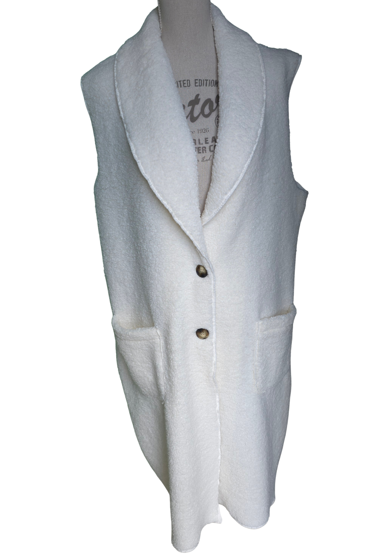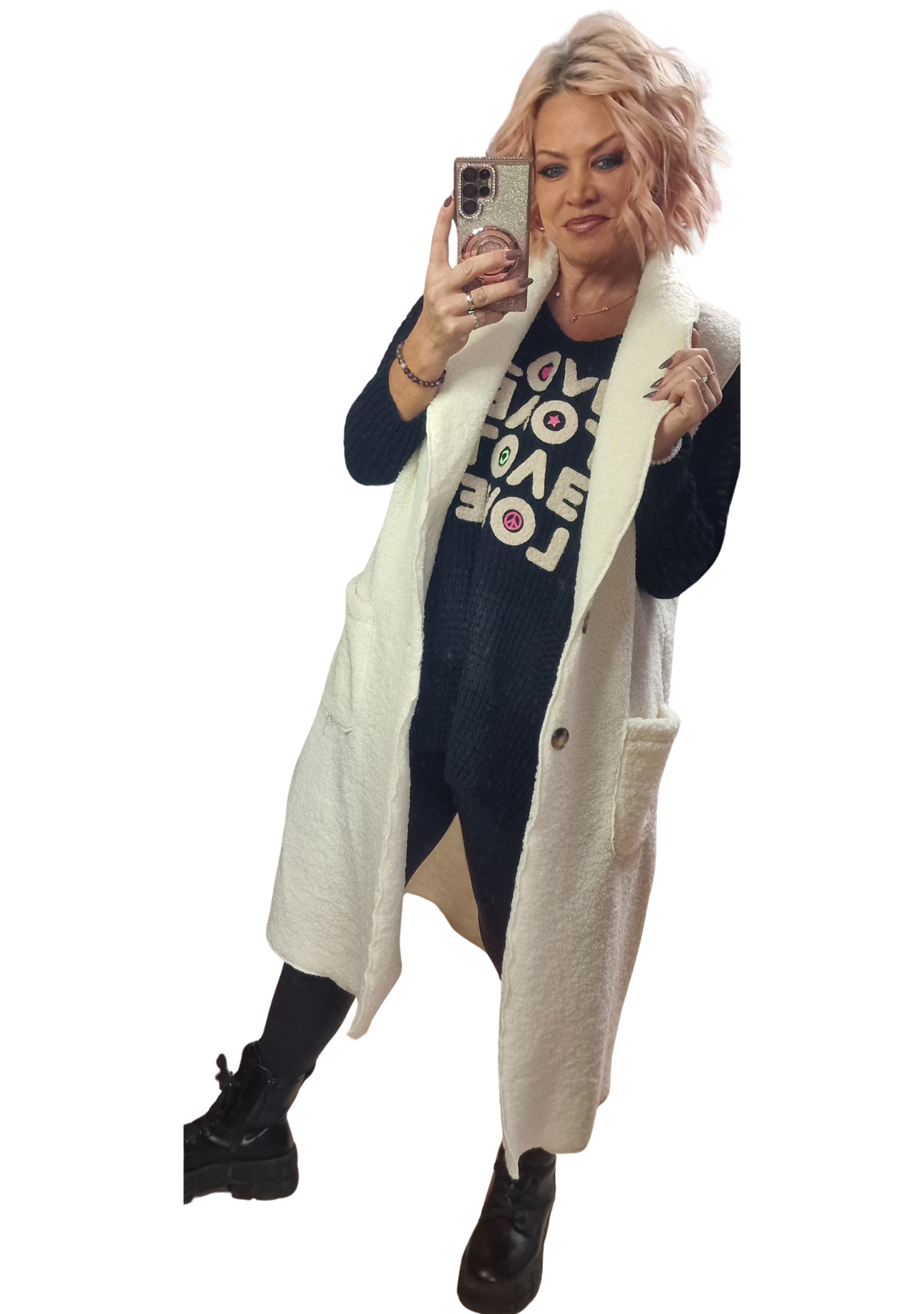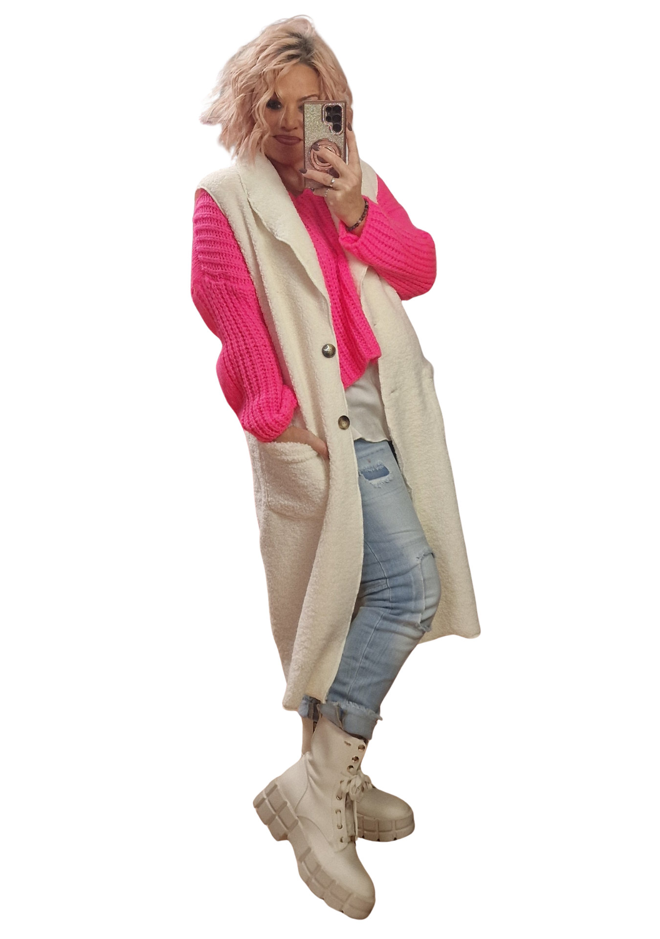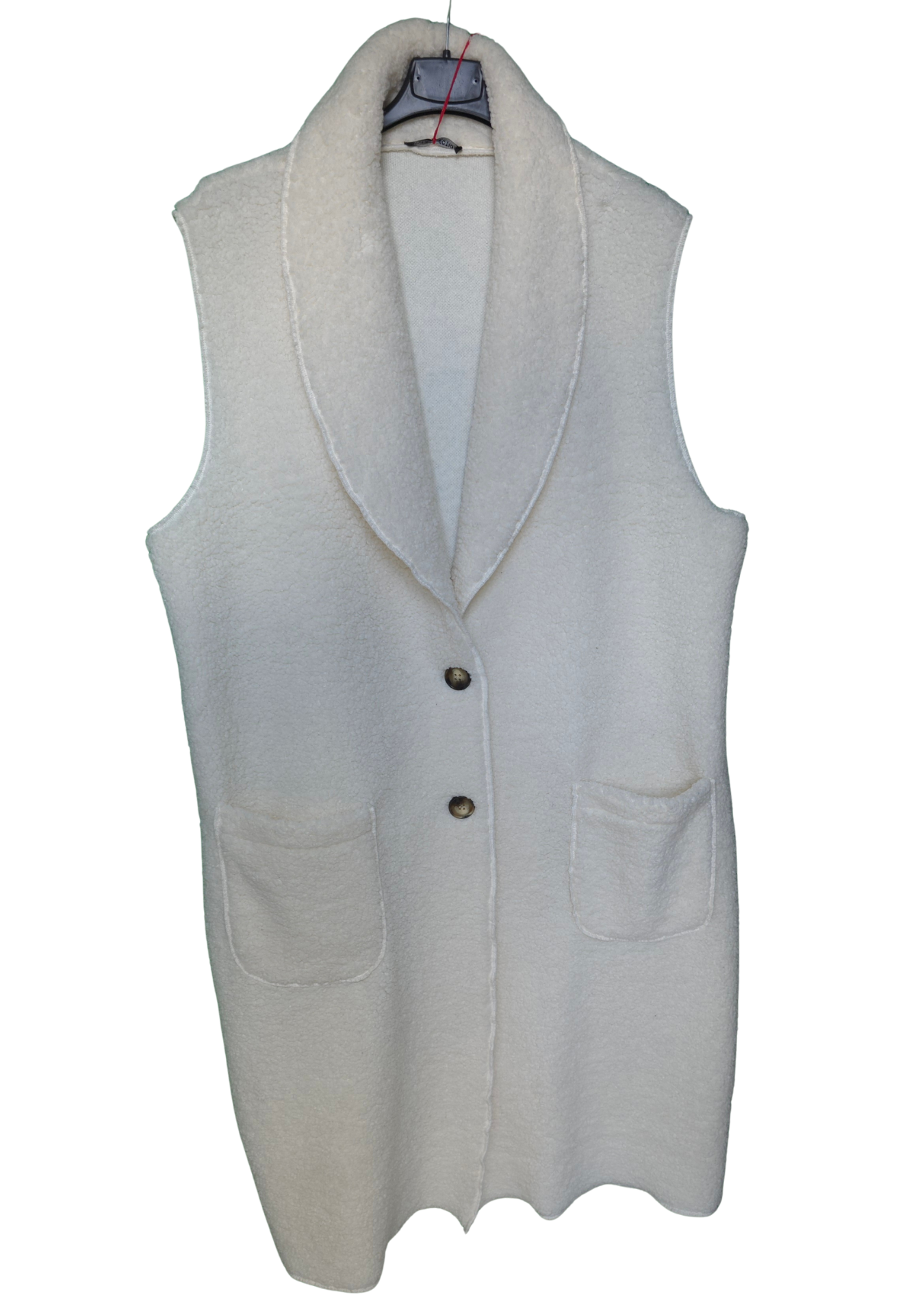 Ein echtes Lieblingsstück für die kalten Tage! Diese kuschelig-weiche Teddy-Langweste in elegantem Offwhite hält dich warm und sieht gleichzeitig super stylisch aus.