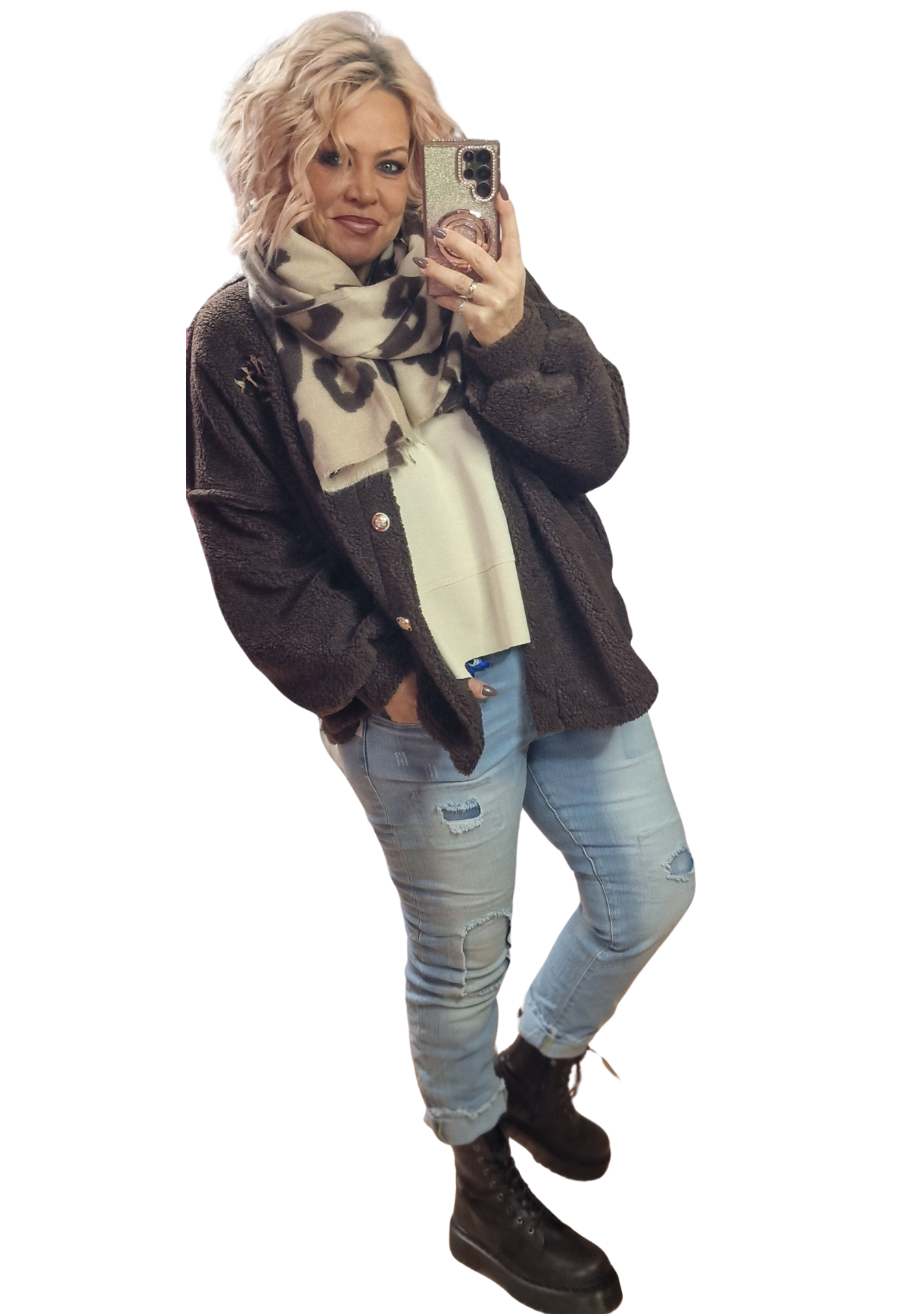 Kuschelige Teddyjacke mit edlen Goldknöpfen
