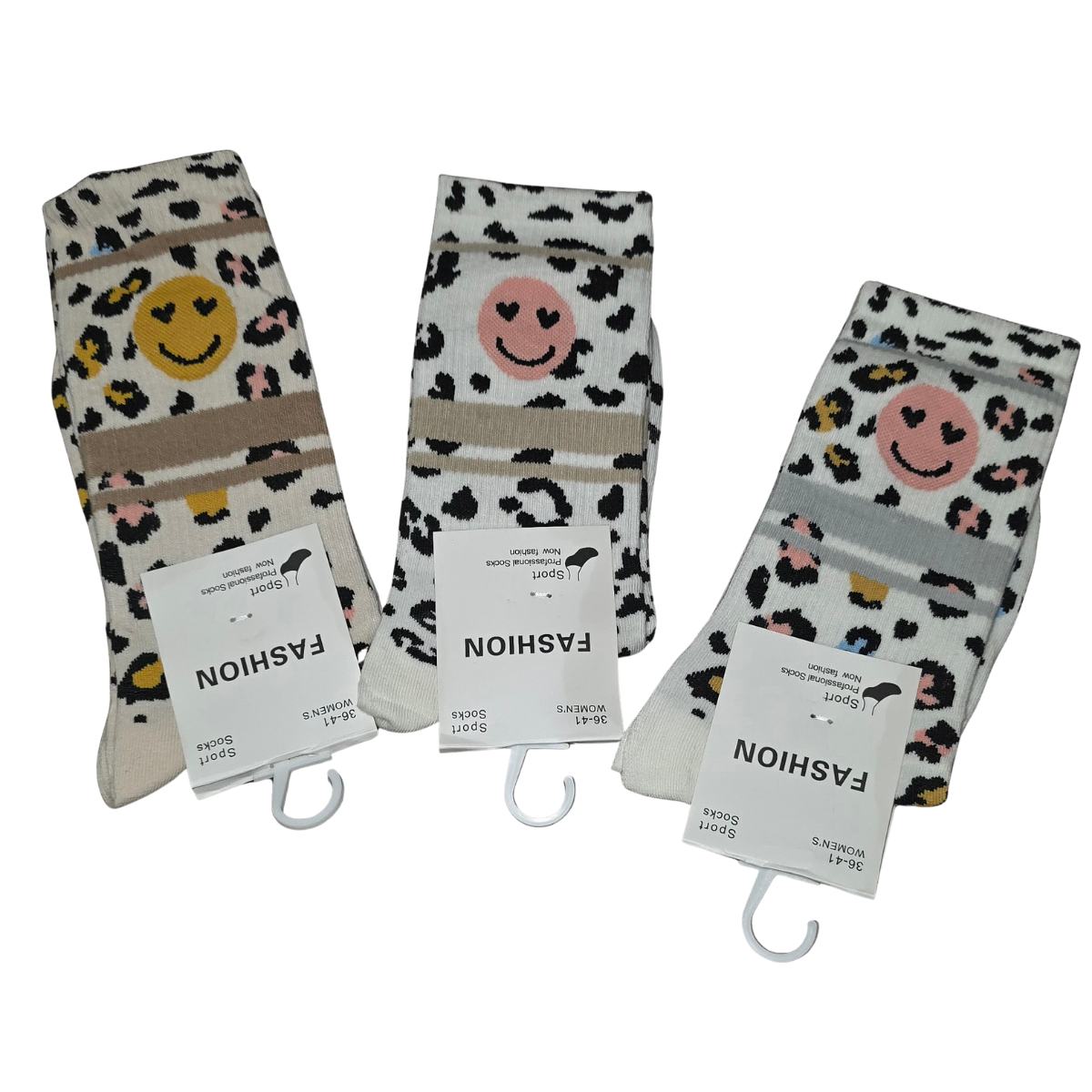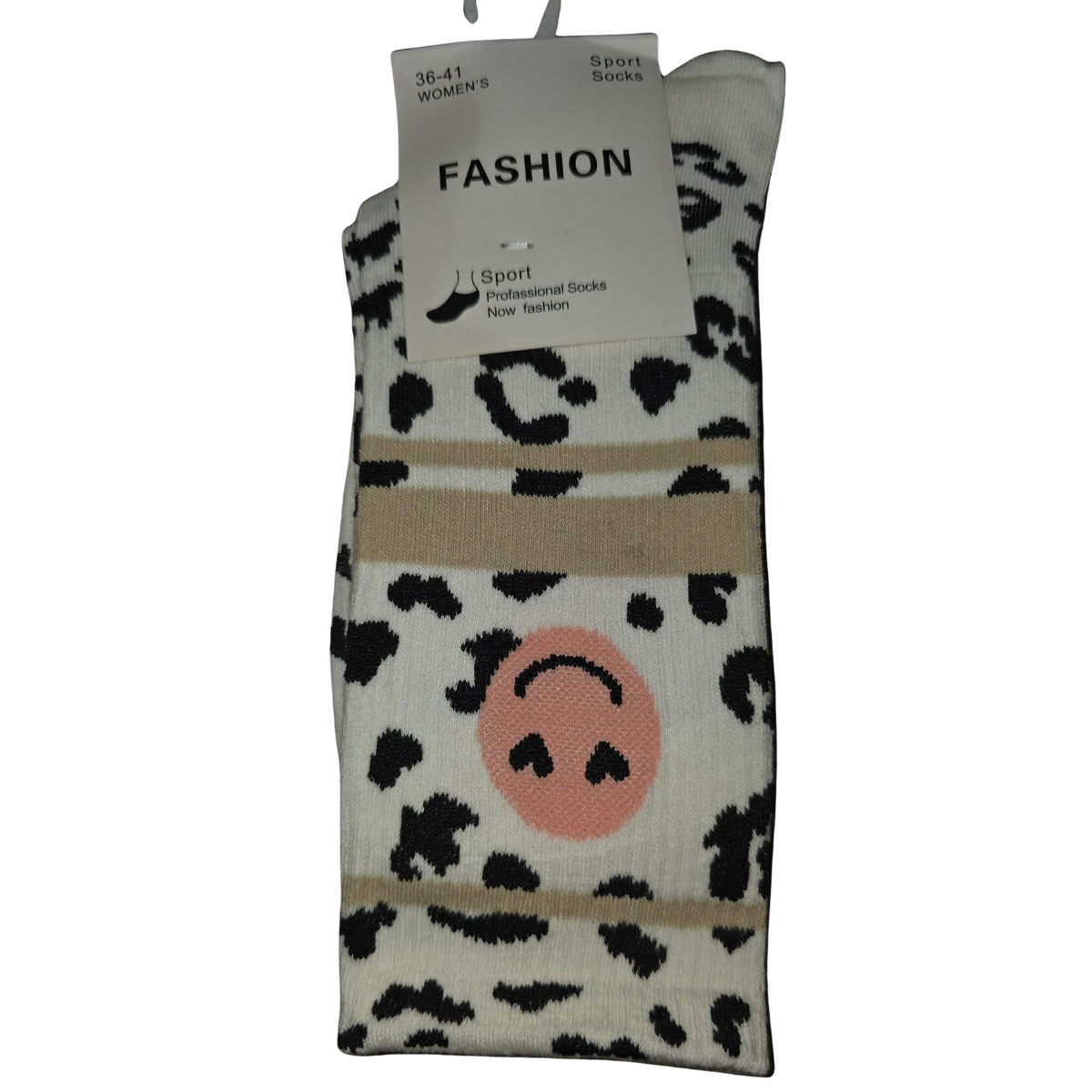 Ein Must-have für alle Fashionistas! Die Tennis Socken im angesagten Leo-Design überzeugen mit einem süßen Smile-Herz-Bund und bringen gute Laune in jedes Outfit. Perfekt zu Sneakern, Boots oder einfach zum Chillen daheim.