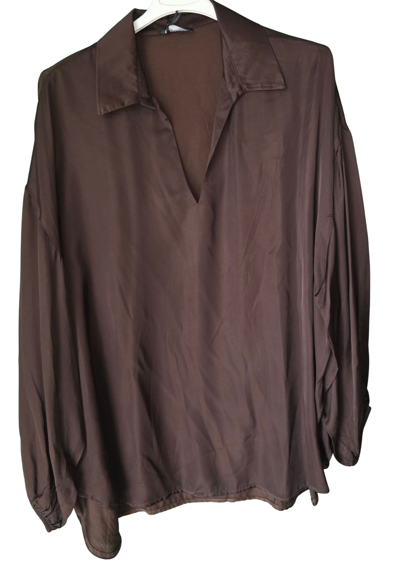 die fließende Eleganz unserer Viscosa-Bluse in warmem Schokoladenton!