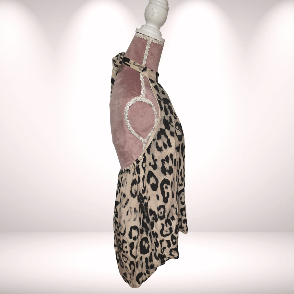 Dieses Vokuhila-Top im Neckholder-Style ist ein echtes Statement-Piece und verbindet einen femininen Schnitt mit einem aufregenden Leo-Look. Die schwarz-leo Farbgebung sorgt für eine edle, zugleich trendige Ausstrahlung.
