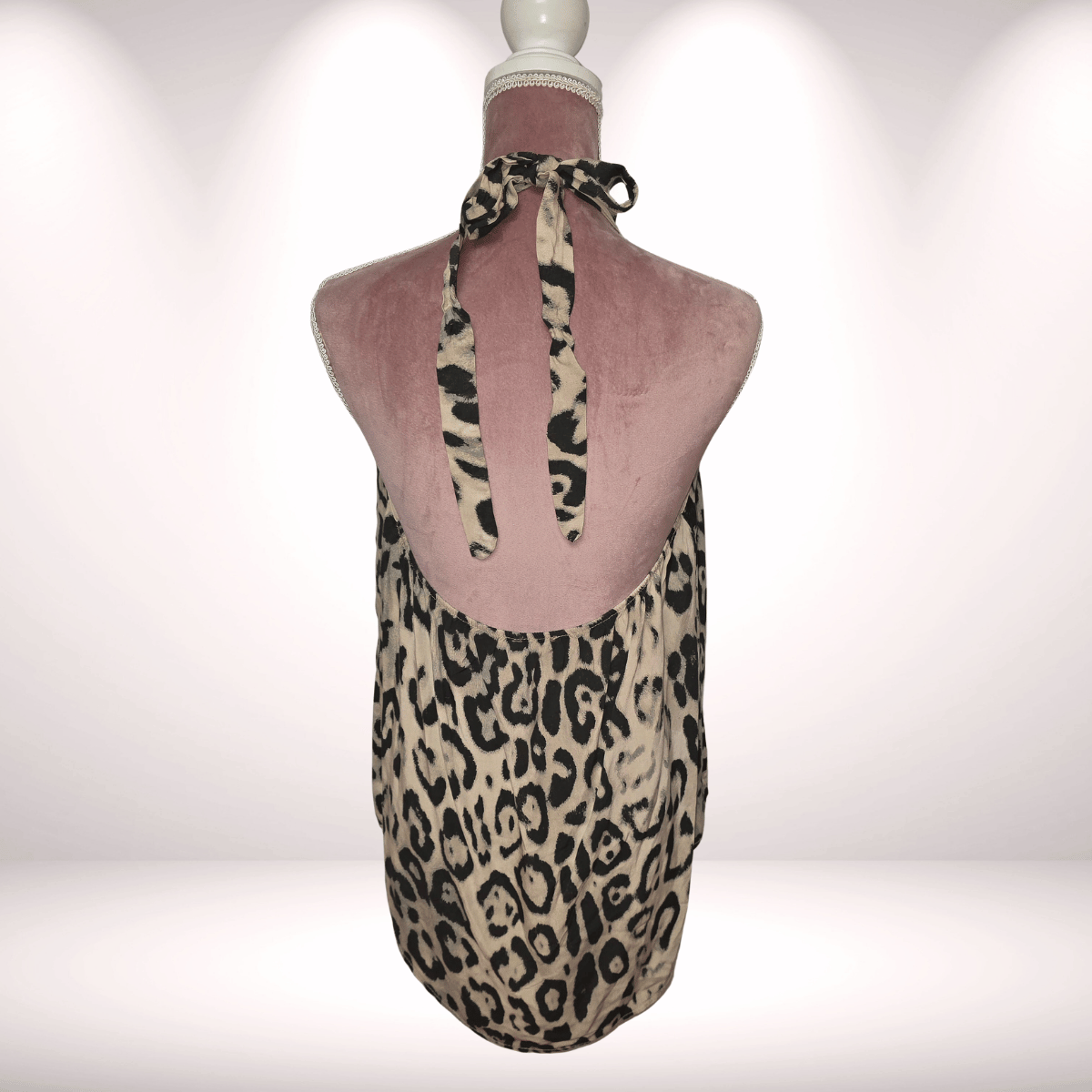 Vokuhila Neckholder Top / Shirt / Bluse – Schwarz mit Leo