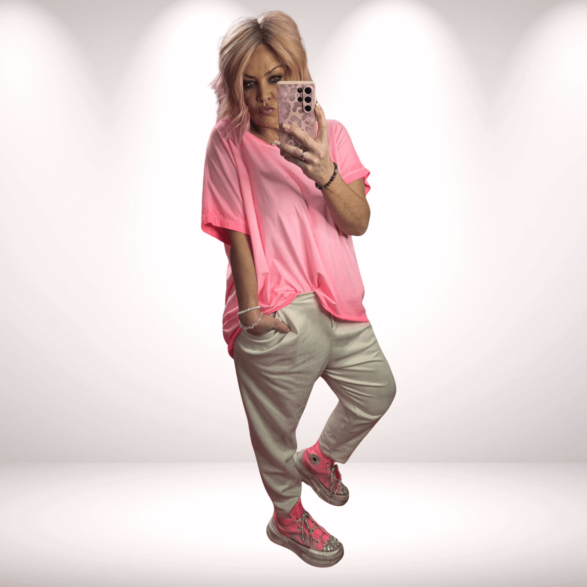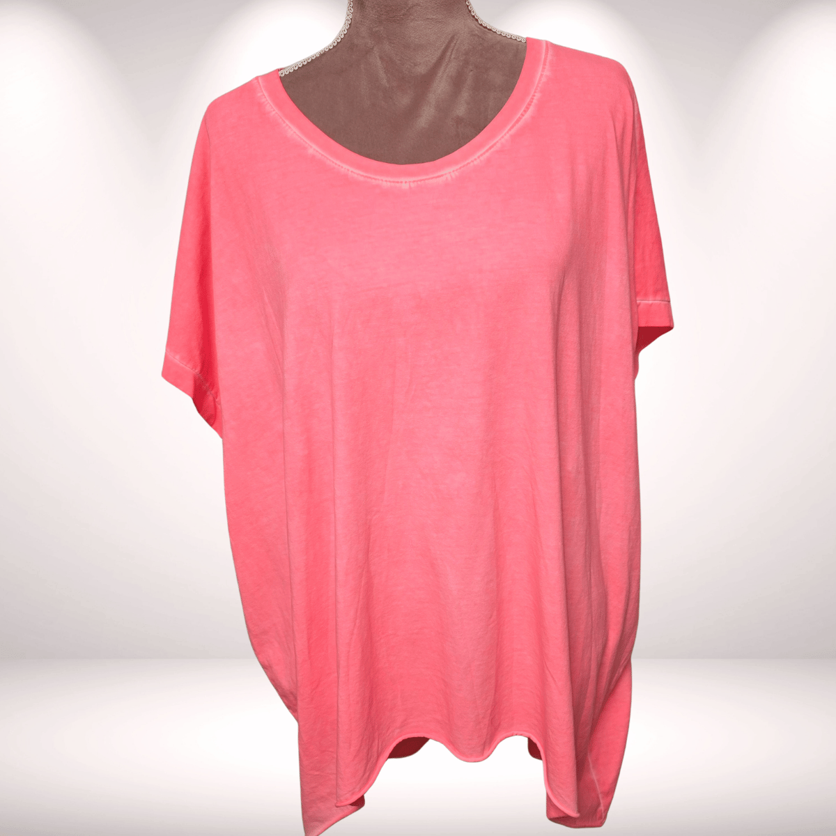 Vokuhila Shirt Neon Coralle-Basic Style Vintage